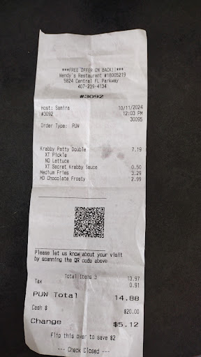 Read moreIf I could put 0 stars just know I would !!!!! Hands down the absolute WORST WENDYS IN TOWN ! If you are in Orlando or in the area & just want to make a quick stop DO NOT STOP HERE !! HANDS DOWN THE WORST EXPERIENCE !! My family and I ordered at the kiosk & afterwards I walked up w my receipt to the cash register and waited patiently for about 15 mins & I still did not get attended trying multiple times to get the young ladies attention in the front . Afterwards I was asking her for the cups (bc we were dining in we ordered 4 separate meals & some xtra sides) & she gave me a stank horrible attitude & rolled her eyes at me & only gave me 2 cups.. okay cool I waited on our food I ordered two 4 piece nuggets & one 10 piece nugget ( ONE OF OUR 4 pieces had only 3 in it the other had only 2 in it !! The 10 piece had 7 in it !! We got 2 fries out of the 4 we ordered & the sandwiches were made incorrectly . When confronted the lady at the counter she gave me more attitude & I just simply didn’t want to argue with her I was hungry & wanted to get the meal I ordered I simply just walked away .. I DO NOT RECOMMEND ANYONE EATS HERE GO NEXT DOOR TO THE KFC AND SPEND YOUR MONEY THERE !! STAY AWAY FROM THIS PLACE THEY WILL Rob you & BE SO...