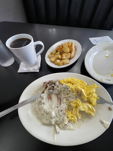 First time being here and it was really good first impression was quiet and cozy, I got the southerner. Very good gravy a bit on the sour side a bit but overall good. Biscuits wasn’t soggy at all, links weren’t salty at all very snap, scrambled eggs were soft and fluffy not watery or dry. I drink my coffee black but couldn’t tell if it was locally sourced but really good. Home fries were forgotten but was a bit on the salty side but a little ketchup doesn’t hurt right? Waitresses definitely make the place feel like home nice and cozy. Treating everyone as if they were family very attentive which I love to see. It was good that’s why there wasn’t any food leftover! But if you are in the area I’d recommend this...