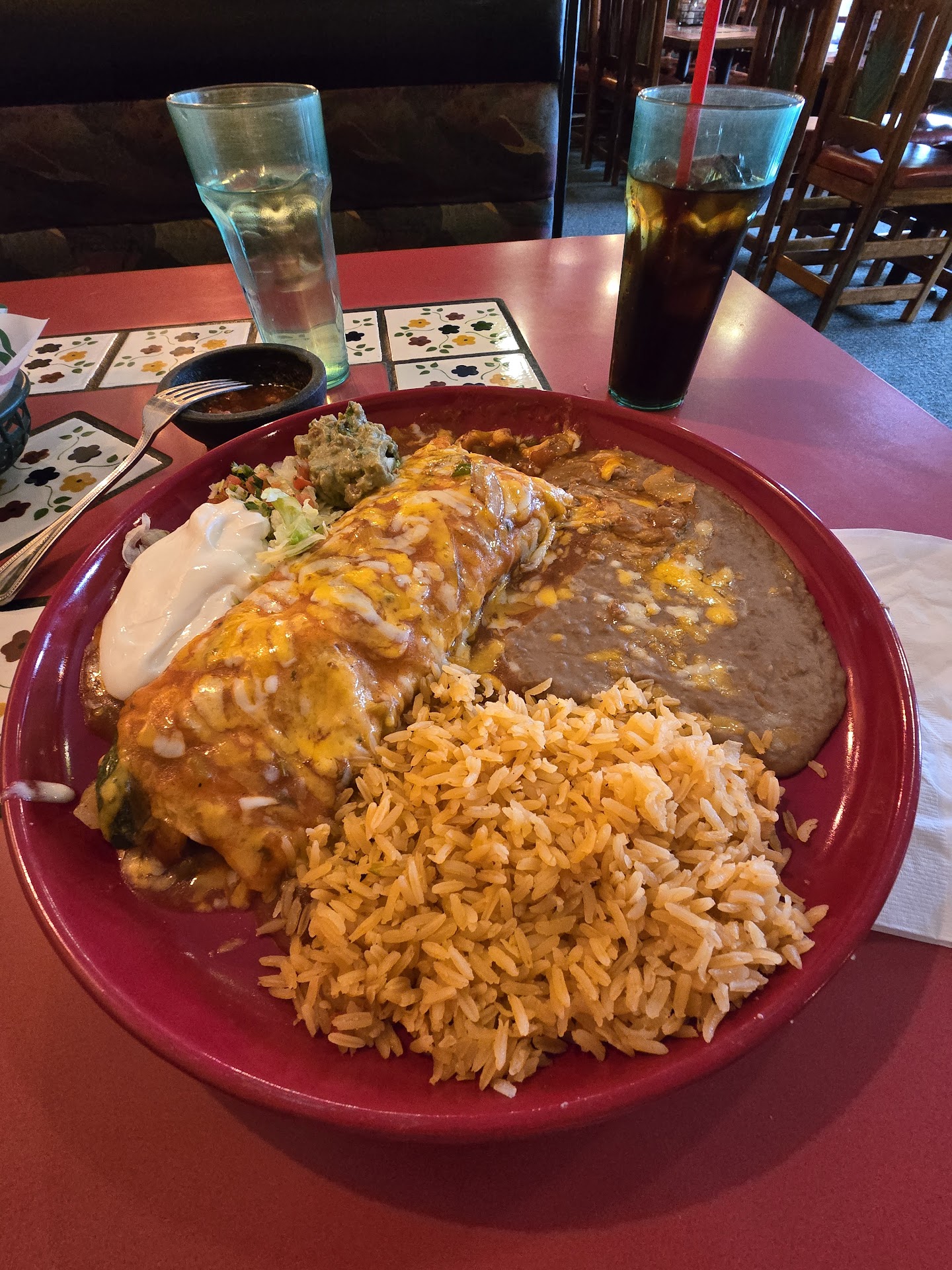 Read moreOk. Maybe Mexican food isn’t their forte’. Which to me is weird. The name kind of makes you think it is. But all the good reviews are for things like prime rib. So. I do not recommend ordering the chimichanga right now. The meat was not seasoned great. Tasted like high school cafeteria taco meat. The pork tamales were ok. But they were… square? Like they were made from frozen? But that’s ok i guess you can’t win them all. The other possibility is that is was some kind of quick tamale that was made like casserole and cut out in squares? Which would be even better, because you know, i can totally see a restaurant in drain making a tamales casserole as a standard tamale. Hey its ok, she said it was pre made. If it was frozen that might have been why it tasted ok. 👍🏻 but. Ok, learn how to season your ground beef. Change your fryer oil. either make them look like tamales or call them tamale casserole. So ONE good thing. The service was good. Server was nice and easy to help. But. She didn’t get my order right, i had to scrape sour cream and guacamole off my food. usually i can get through it like that. But this time nope. That sour cream was souuuuuuuurrrrrr cream on flavorless meat, in a stale tortilla cooked in old...