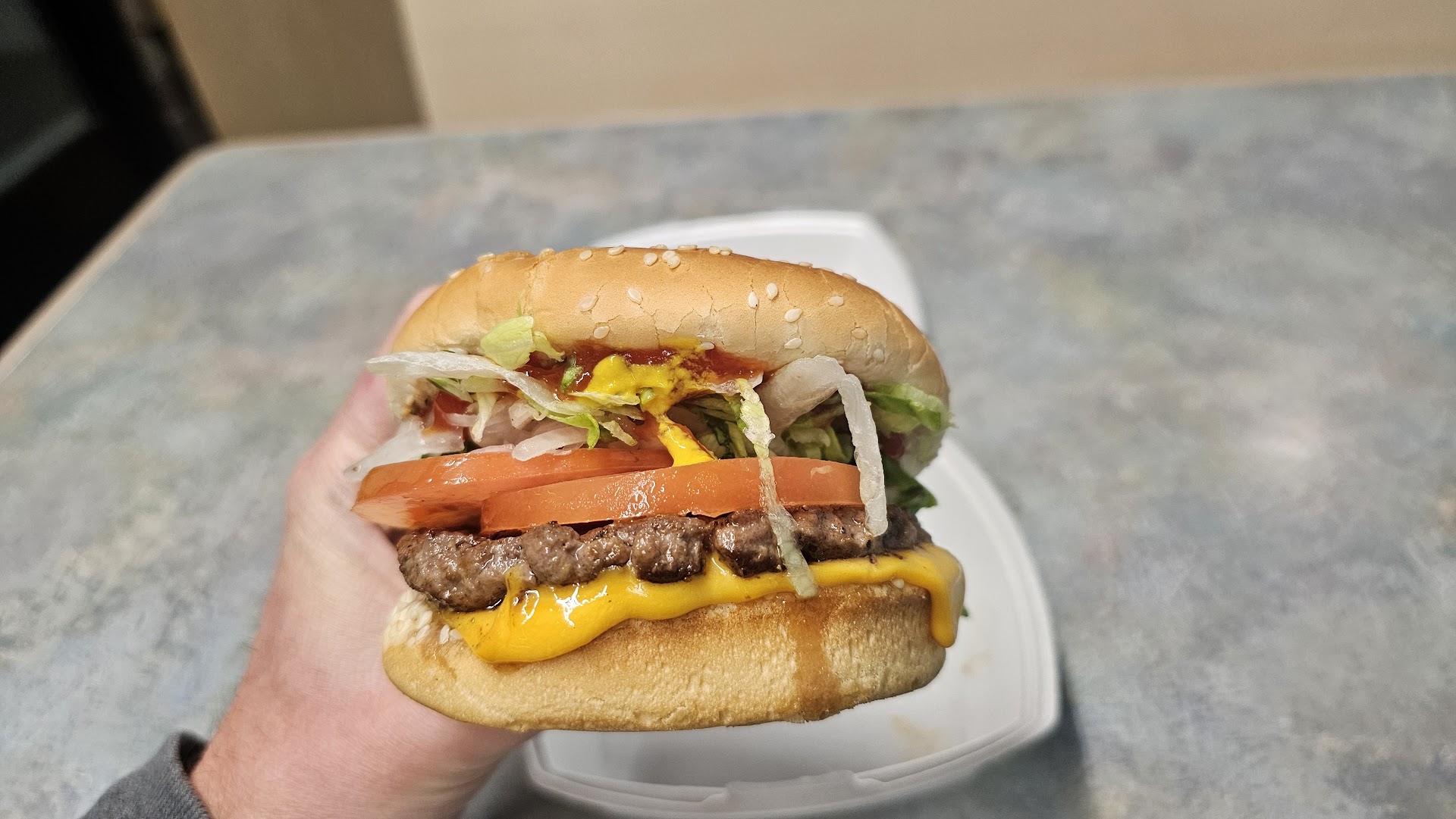 During my visit, I enjoyed the Big burger. It's a standard hamburger, but doesn't have the grease and regret of fast food burgers. The fries are good and perfectly salted, although mine could've used a little more time in the fryer. I also ordered a Reese's shake and it's solid. On my next visit, I'd like to try the spicy chicken sandwich, onion rings, and a different shake flavor (maybe the brownie).