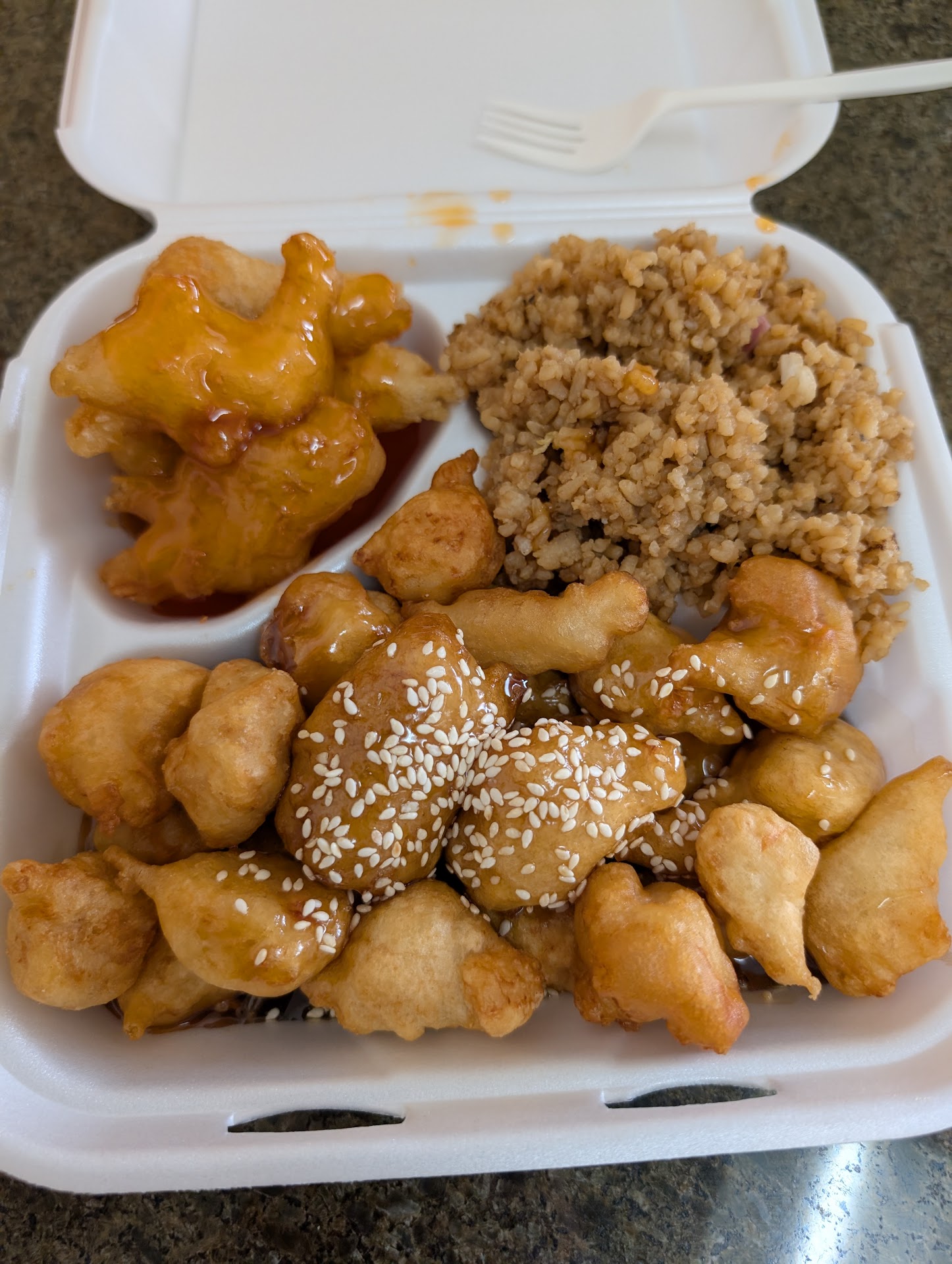 Read moreMy family is new to the area and we decided to check this place out. My husband ordered the orange chicken and I got the garlic chicken. When we got home and started eating, the garlic chicken was crazy spicy and had no garlic flavor. We assumed we’d just been given the wrong meal and I am a whimp when it comes to spicy food. I asked my husband to run it back to exchange it for the right meal. When he went back and explained that the meal was very spicy and didn’t taste at all like garlic, he was told that the garlic chicken is very spicy and that it has no garlic. What? He had them repeat that back to him to make sure everyone was on the same page and was told the same thing, “The garlic chicken has no garlic. Everyone cooks differently.” Our family all thought the orange chicken was fine, but we won’t be eating there again. We prefer food that comes with the advertised, named...
