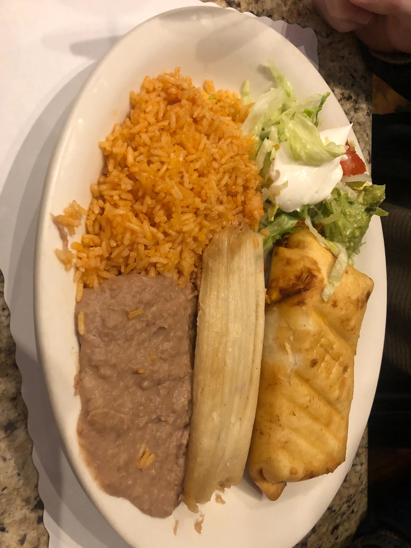 We then split the fajitas (and took a lot home as leftovers). We tried the combo with steak, chicken, and shrimp and I was surprised that the shrimp tasted good. Most restaurants overcook shrimp like this, but La Hacienda's shrimp was moist and cooked just right.