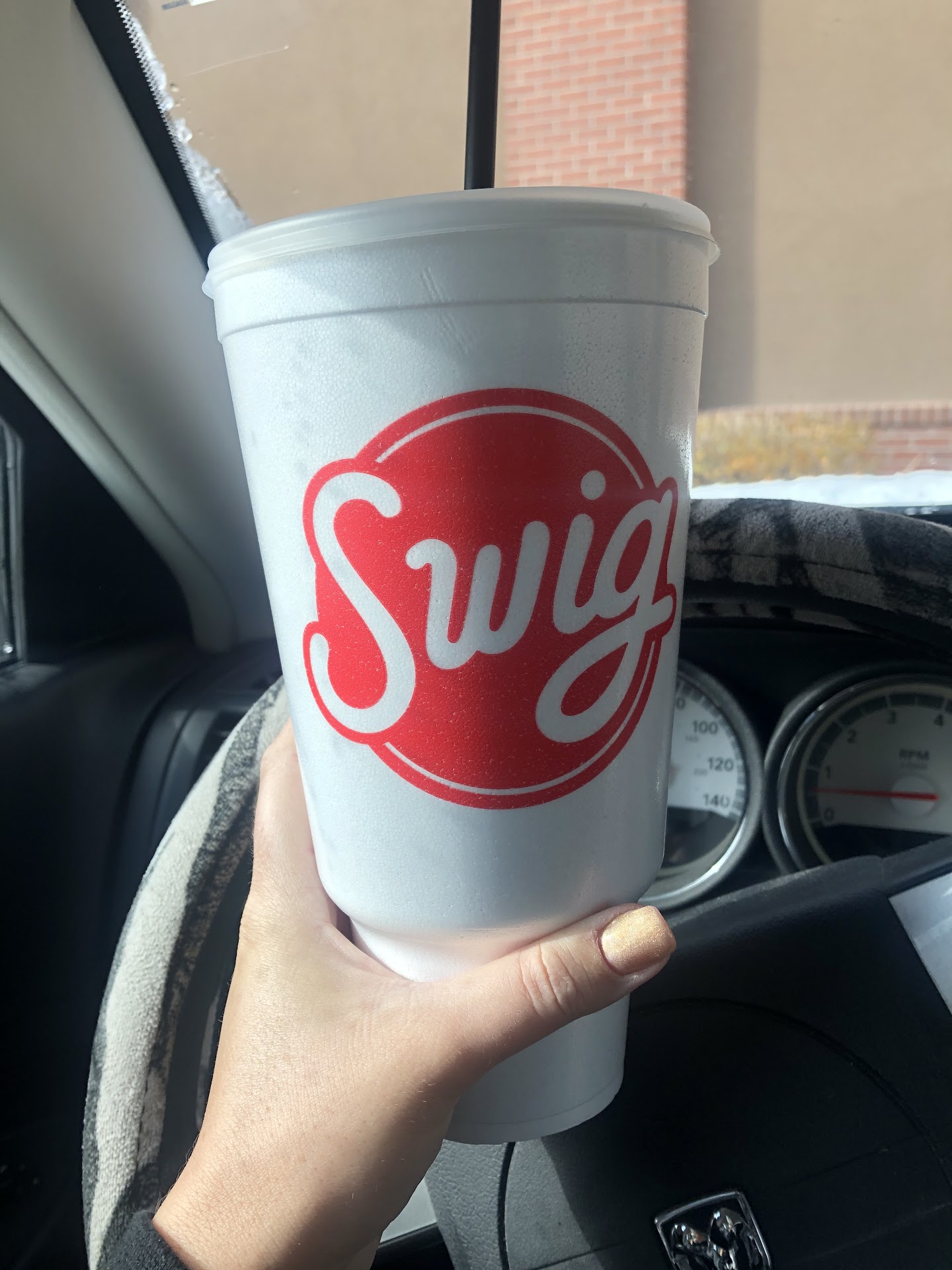 I don't like the new Swig and miss the old version. I use to come here 2-3 times a week with a souvenir cup, but I've stopped since they reduced their menu options and jacked up their prices. I hope they find that those changes were a bad idea and have the wisdom to correct it. The drinks are usually really good as long as they put enough shots/flavor in them, which they don't always do, and don't put too much ice, which they always do! I recommend asking for light ice or even extra light ice or else they'll fill the cup 3/4 or more full of ice. I also got a cookie here once, I believe it was $2.68, and it was frozen. When I went back in to ask about it, they said they come like that and to let it thaw. I was still confused about receiving a frozen cookie but thought I would give it a try. It tasted fine, but if I'm going to pay that much for a medium-sized cookie, I would prefer it be warm and soft. So if I want a cookie, I'll go next door and get 3 from subway and pay...