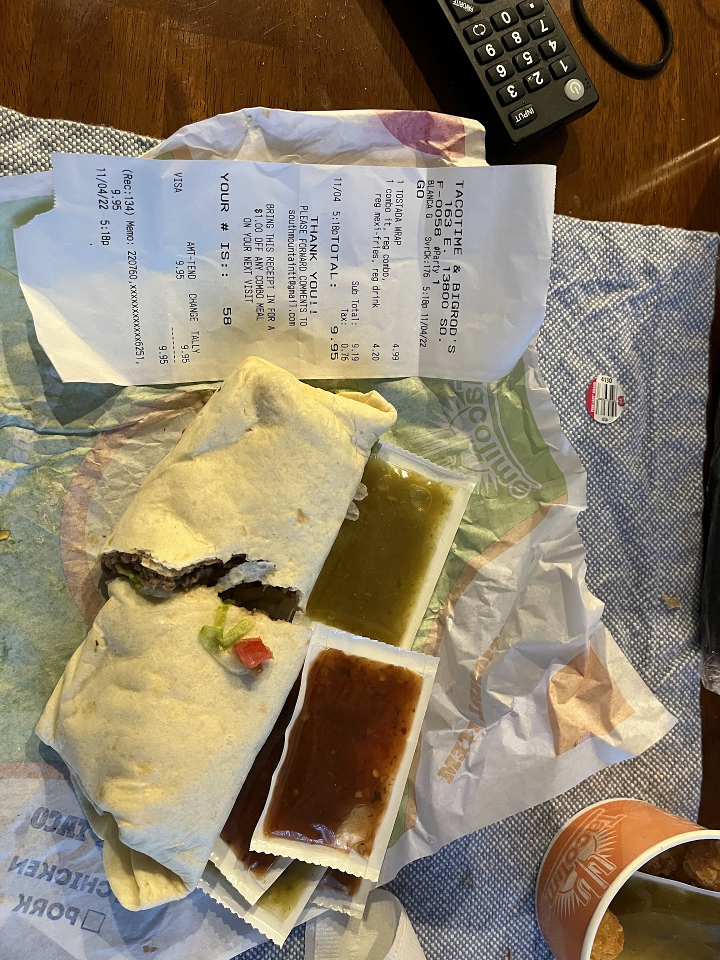 PRODUCT/SERVICE I purchased a sweet pork burrito in a meal as well as a free chicken quesadilla with my coupon. They were delicious. The tatter tots that came with the meal would make Napolean Dynamite jealous.