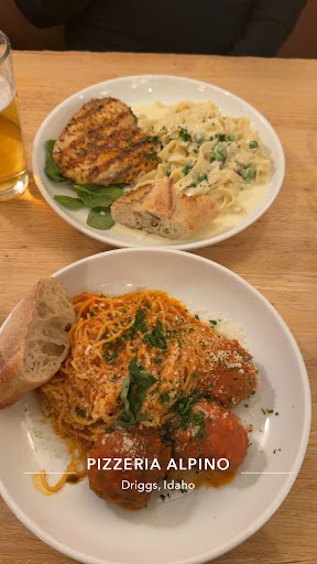 Read moreMy wife and I discovered Pizzeria Alpino on a Saturday evening while spending two nights in Driggs during our cross-country adventure. What a fantastic treasure discovery it was! Regarding our Italian food "credentials," we eat a lot of it and lived extensively in Milan, Italy, New York City and San Francisco. Everything that we ate at Alpino was absolutely superb. We both ordered appetizers, entrees and also took a large pizza to go. We also split Cannoli for desert. The pastas were all hand-made and cooked perfectly, the seasoning of all dishes was flawless, the pizza crust was aromatic and delectable and the Cannoli was incredible, not too sweet like most versions. The service was perfect as well, super friendly (Paola was such a lovely person!) and efficient. We were sad that they are closed on Sundays, otherwise we absolutely would have gone back for more the next day. My only constructive criticism is that the "by-the-glass" wines could be more "correctly" poured as they were pretty frugal, particularly for the price (a contrast to the generous food portions). All in all, however, one of the best Italian meals we've had in...