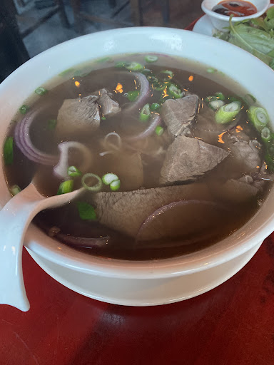Our drinks were delivered almost immediately. The beer was light (both look and taste) and very refreshing. The tea was creamy and sweet. Our food, on the other hand, came after a thirty minute wait. We could see that there were many order slips in the kitchen but we never got a heads-up until later (read below). When our food finally came, we dug in. Almost immediately I began suffering. My “level 2 spice” noodle dish tasted like a level 99 spice dish. I don’t know what went wrong, why it went wrong, how or where it went wrong, but apparently my fellow diners believed it was an appropriate level 2 spice. I sat here blowing my nose and eating ice cubes at the spiciness. I then tried the curry, which happened to be LESS SPICY than what I had eaten from my noodles. Go figure. Anyway, the noodles were chewy and the sauce was sweet yet sour. Absolutely delicious. The curry was creamy, full of flavor, and understandably spicy. It came with a side of white rice. The bison pho was delicious as well. The broth was clean (for lack of a better word) and the meat was tender.