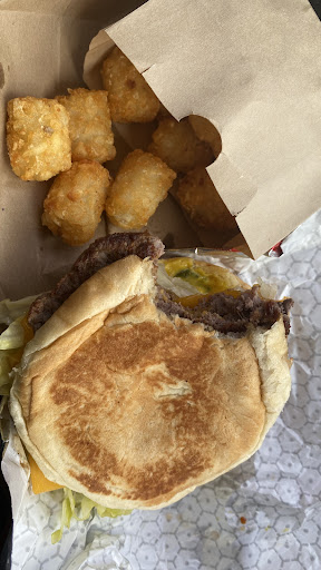 I think I tried this brand at some company picnic that was catered years ago. I don't think it was notable then and I guess I reaffirmed that today. See photos. For a combo with a regular size shake you are looking and $15+. While I don't necessarily have a problem paying that much for a burger lunch, it has to be delicious, and unfortunately I grade this meal at a C minus. The good: the food was at a good temperature, served quickly and the customer service was also good. The bad: The burger meat tastes bland and I mean unseasoned. Maybe they salt and pepper the outside as it's on the grill, but once you taste the inside of the meat patty, it is definitely unseasoned and could be any kind of hamburger meat at that point. Don't think too long about that. The burger was a bit messy. Either too much water left in the lettuce or they have the veggies on ice or something. By the time I got 3/4th the way through the thing, it was falling apart, so I just ended up ditching the bread and veggies and pulling out the meat and cheese to finish it off. The tater tots just seemed average, no real complaints there, but the size of their regular shake was pretty small. I asked the drive through clerk if that was a kid's size. He responded, no, we get that question a lot. Well, message to the owners, there's your clear and honest undercover boss moment. Time to upgrade the shake size. For $4, I could probably circle back to Baskin Robbins and get something a little better than soft serve for the same price. Maybe. I don't know. But why make me think that with your small shake size? Ha ha.