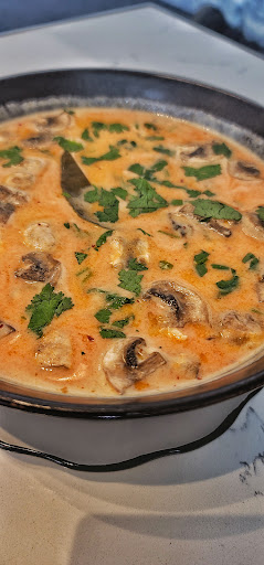 I am so glad we found this restaurant! The first impression was a happy, smiling greeting (which says a lot with a masked face). She was very patient when she had to repeat herself because I couldn't hear. We didn't order any, but while I was standing there, I observed a pretty good wine selection and a pleasant atmosphere. I'm looking forward to a date night here! We got a mango tea to drink on the way home. It was mildly sweet and fizzy. I really enjoyed it, a great cocktail substitute. (If I'm in the area, I may stop in just to get the drink!) When we got home we were extremely impressed by the thoughtfulness in the packing! The veggies, rice, and noodles were wrapped in foil and very hot even after 30 minutes to get home. The fried foods were wrapped enough to stay warm but an edge of the container had been opened so that it didn't get soggy. I got the steak entree despite low expectations (take out steak is usually very meh and honestly, beef at most Asian restaurants isn't great in my opinion). It was tender and cooked perfectly, the fish sauce was very tasty! I've had steakhouse take out that didn't come out as well! My husband got the orange chicken and was pleasantly surprised that instead of the usual gelatinous orange sauce it came with a milder orange but very dynamic sauce (dynamic was his word). I wish I had thought to try it. The kids got egg rolls and pineapple fried rice. They didn't give a review but judging by how much they ate of it, it must have been really good! Tom Kha soup was pretty good, I think the only thing it needed was a bit if fresh lime wedge to squeeze in. I plan to test that theory for breakfast tomorrow with my left over soup.