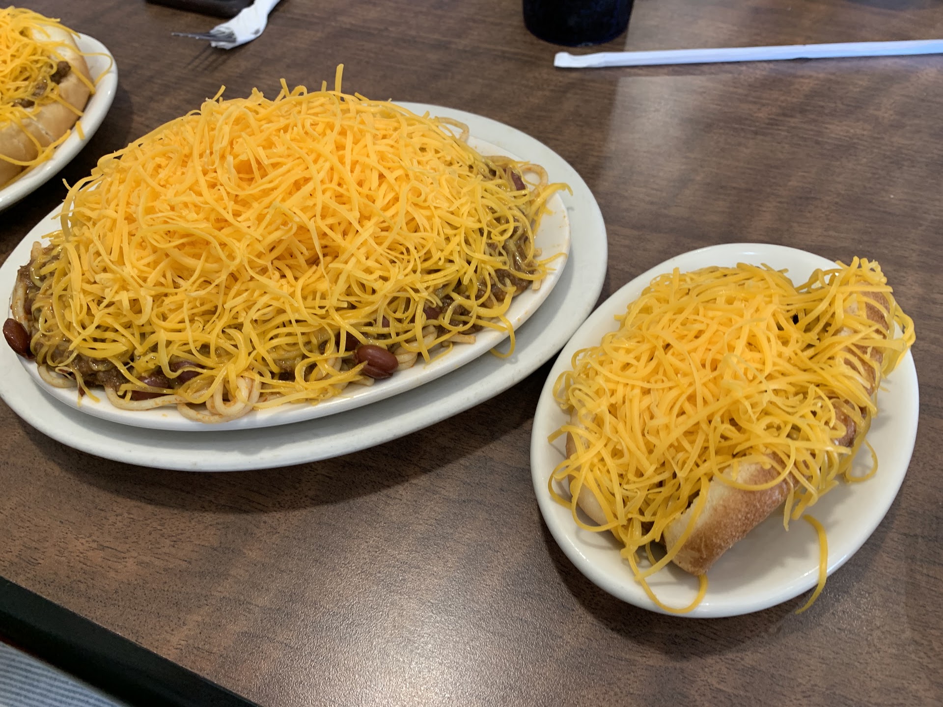 We ordered coneys, a 3 way and a 4 way with beans. We were blown away by how much we liked it! I think it was good we had our expectations where they were and had researched it before eating. If you’re expecting a traditional southwest/TexMex style chili you’re going to be disappointed. Get that out of your mind and think Greek inspired flavors and spices. We went into the coneys first (they are small and not big enough to share. You’ll be happier getting your own) and the flavor was outstanding! We felt like the Greek spices (cinnamon, etc) were very mild and blended in well to the coney. The mustard is a nice addition. Add some of the Skyline hot sauce and kick it up a notch! The 3 & 4 way spaghetti plates were good, but the cinnamon did seem to be slightly more pronounced in that dish. Still really tasty!