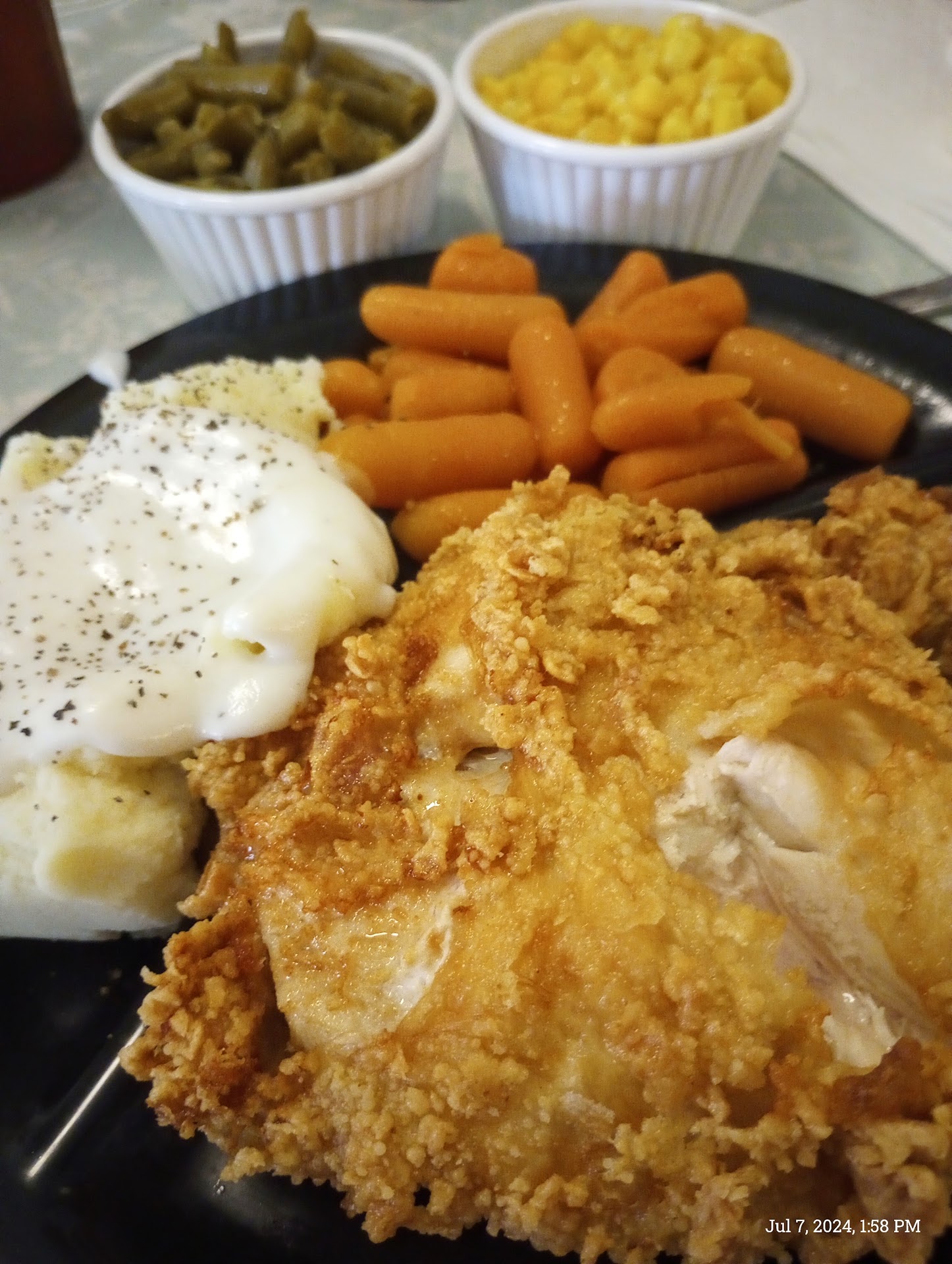 07/07/2024 First time trying BJ's Garden Inn Cafe. Had the Sunday lunch plate which is two pieces of fried chicken, white or dark meat, plus two sides. Pictured there are three side because I did not order the carrots. Our service was good, the waitress was great. The food was what I would call average. There wasn't anything bad or wrong with it, just not 5 stars. We both had the Coconut pie for dessert, it was amazing. Completely homemade down to the crust itself, which was very good. We had Sunday lunch plates(2), drinks(2) and both had pie for dessert and it was under $34.00. Definitely worth it. We are looking forward to trying breakfast there soon. This place is a small town, old time diner....