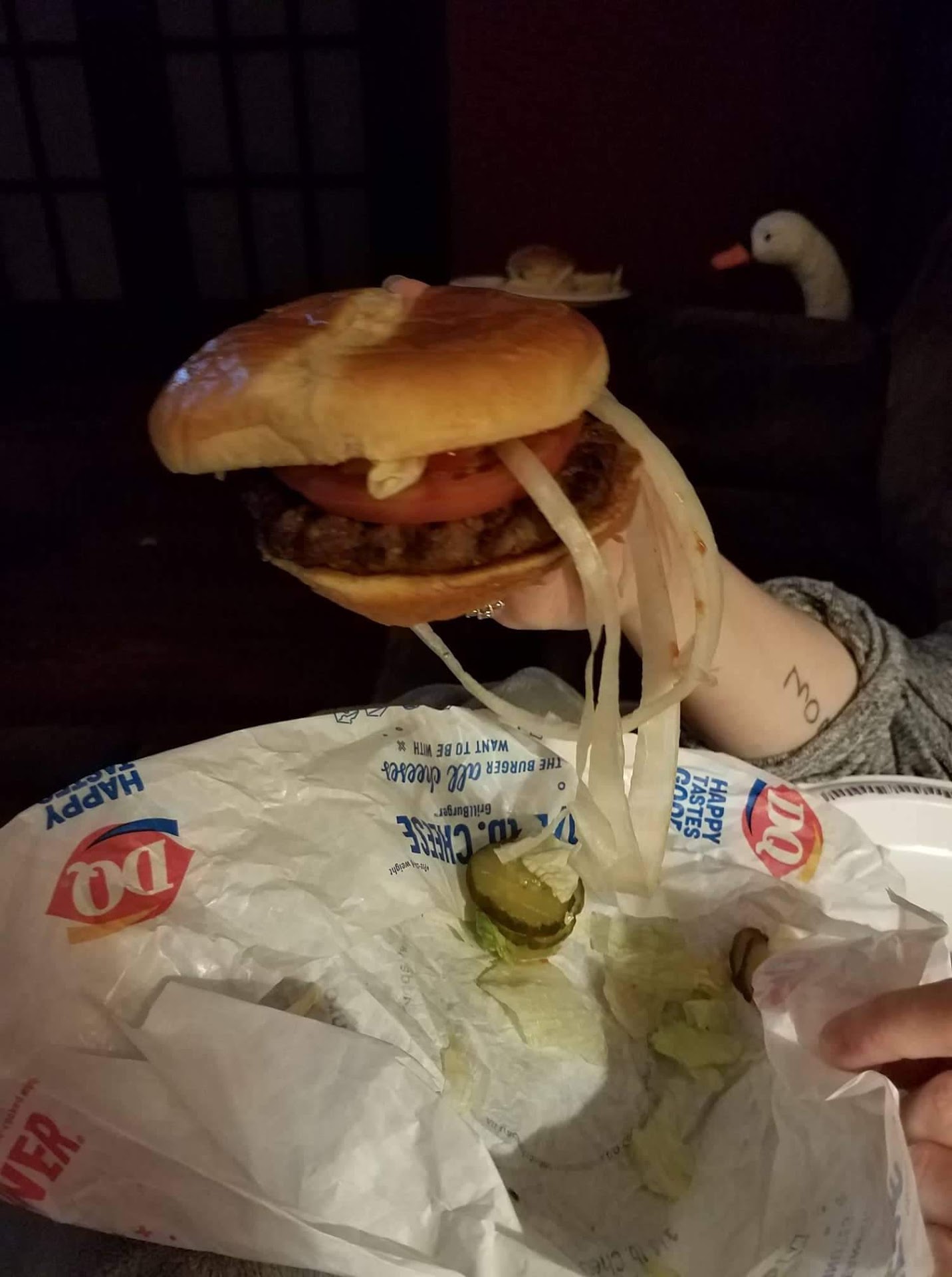 Read moreI've never had a issue before but this is just sloppy. First I went through the drive through and I had to repeat my order 3 times bacause she didn't hear anything I said the first 2 times. I was talking slow and clearly I don't know if it was the speaker or their microphone. I was not hateful or a typical Karen. I got my order and my cherry slush wasn't mixed correctly, also my chocolate shake was just ice cream with chocolate syrup on the bottom. My burger I ordered has 2 giant onions on it that are bigger than the burger itself. Just looks very sloppy. The french fries taste old like they have been sitting out all day. I know that things have been really crazy and hectic with everything going on in the world but there has to be some quality...