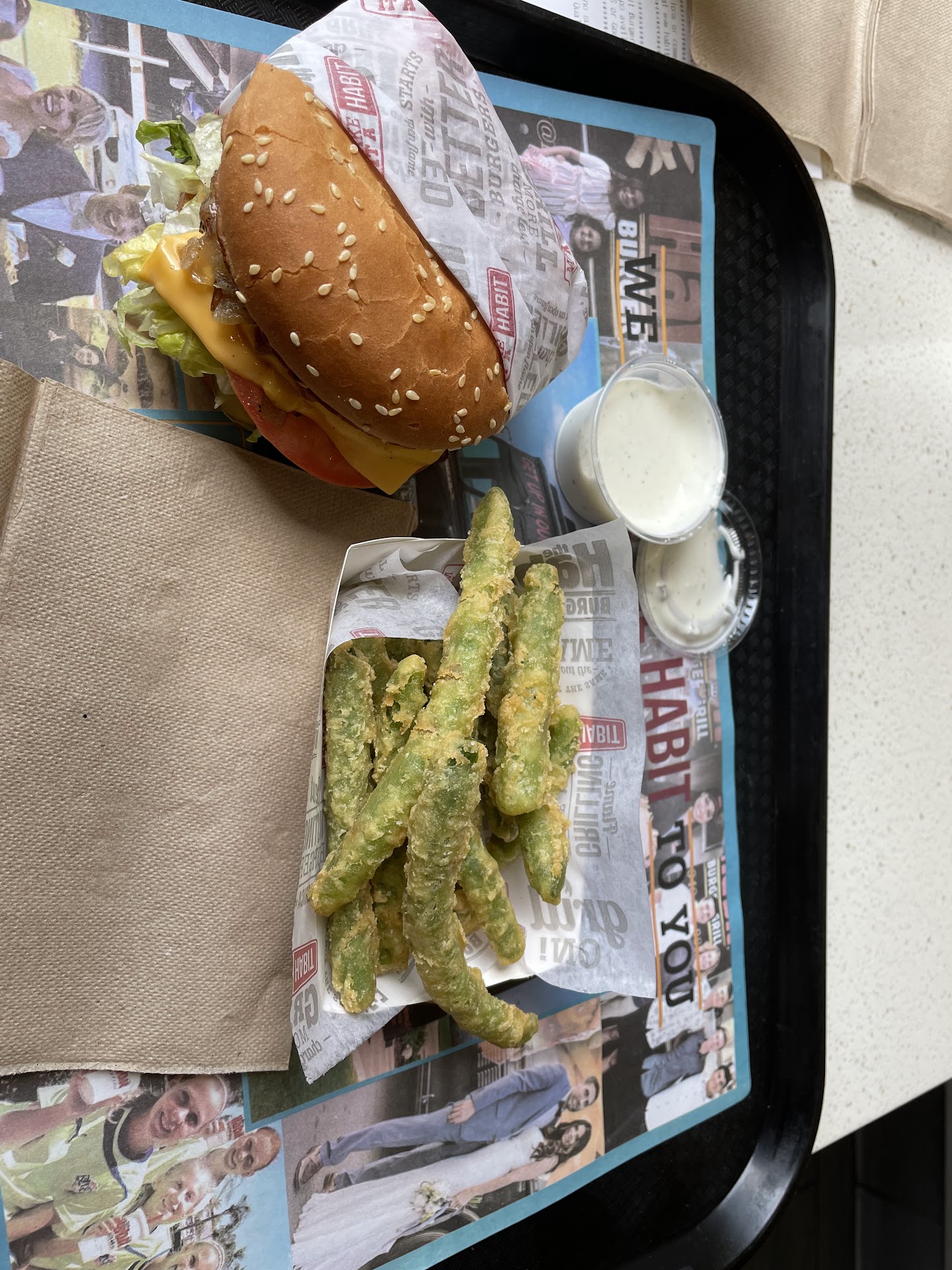 Read moreHow was habit Burger grill? It was very good. I took the food to go. I purchased three double char burgers one charburger one of the doubles had cheese. I got three orders of french fries one order of fried sweet potato and one order of onion rings. They gave me ranch dip for the onion rings which was very good and fresh. I also got two chocolate shakes they were very good and one large drink and one medium drink. For the drinks I got strawberry limeade and the ginger peach which are both delicious. The whole order came to around $46. I was very impressed with the food all around. Everything made it home hot and fresh tasting. I purchased a Burgers with everything that normally comes on them.The young man that serve with the counter was very personable and Friendly. the store was relatively busy yet nevertheless the food came up pretty fast and I didn't have to wait as long as I expected. Everyone at home was very satisfied with their meal. And I'll...