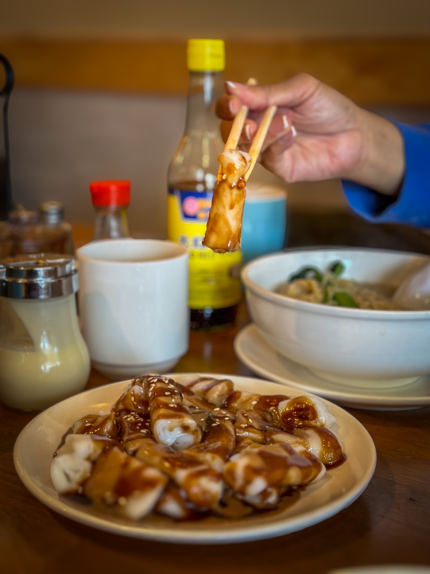 Snacks/Sides: You have to get the rice rolls - the house special sauce is so peanuty and delish. Their pineapple bun is also nice and crunchy on the outside with the heaping slice of butter on the inside. Toast super yummy becuase again of the peanut butter. The Chu's bread is like a chunky baguetee (not sure why it's named Chu!)