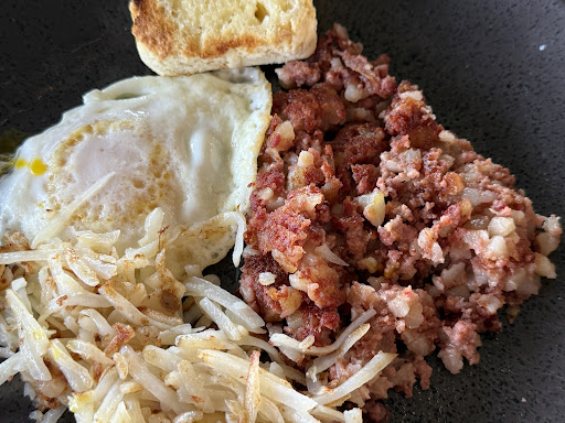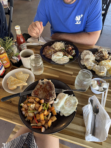 Read moreCame for breakfast with a friend sat outside in the patio. Everything was great wonderful service by Mauricio. We got the corn beef, hash, eggs, biscuit and hashbrowns and a coffee each we shared a breakfast. The portion was so big prices are a little high, but the portions are big. The coffee was OK And the eggs were a little bit gave me but again wonderful service. The food was delicious. Great company 10 out of 10. Totally recommend. We will definitely be going back again. You get great views of the mountains and you can sit inside or outside. They have a breakfast menu and they have a dinner menu. They have street parking and parking...