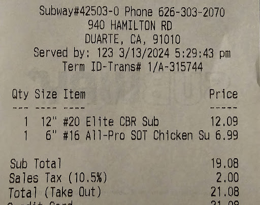 Been to hundreds of these particular brand outlets all over the USA and Canada. First and last time here. Spicey Italian loaded with heavy veggies is how I like it. The sub builder would only put a small amount of my veggie pick. I asked 4 times to put additional veggies. It's like after asking 4 times to put more on of a certain ingredient they went deaf. I figured that I asked for another veg item to which they did. I asked for more after 4 times and nothing happened. So I was given a thin submarine. They were cutting back to save money for themselves on the product. I've purchased Subway Sub from Maine, Massachusetts to California. Any other store would pile it on heavy. Not this location, I'll go back to the other Sub locations. Two years ago local guide Jose Morales visited here and had the same treatment by Sub staff. The subway sub pics I've posted is what a sub should be. Not from this location. Sorry for...