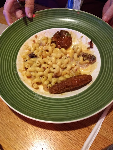 My pasta was undercooked and burnt.... definitely had Very Little cheese, barely noticeable but yet it was suppose to be the 4 cheese mac and cheese! but the chicken was very flavourful. My husband's meal was bland but ok. My daughter's meal came with 2 sides and she requested extra serving of fries... it was about the same as 1 serving compared to my son's 1 serving of fries.