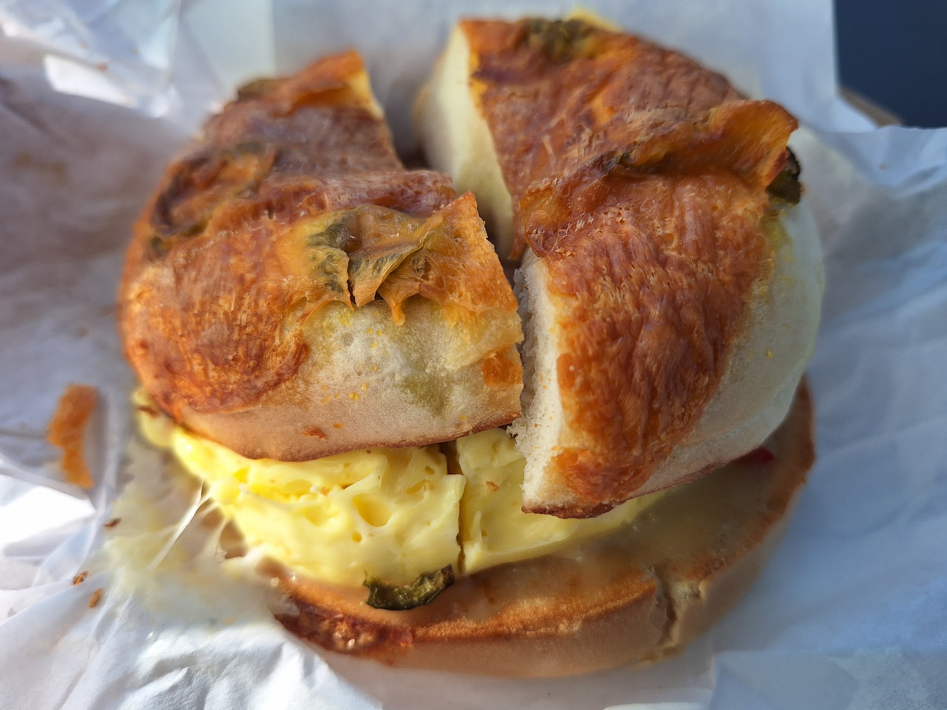 The combination of the spicy jalapeño and rich cheddar infused into the bagel provided a delightful kick, complementing the savory flavors of the sausage and pepper jack cheese perfectly. Each bite was a harmonious blend of textures and tastes, leaving a lasting impression of satisfaction.