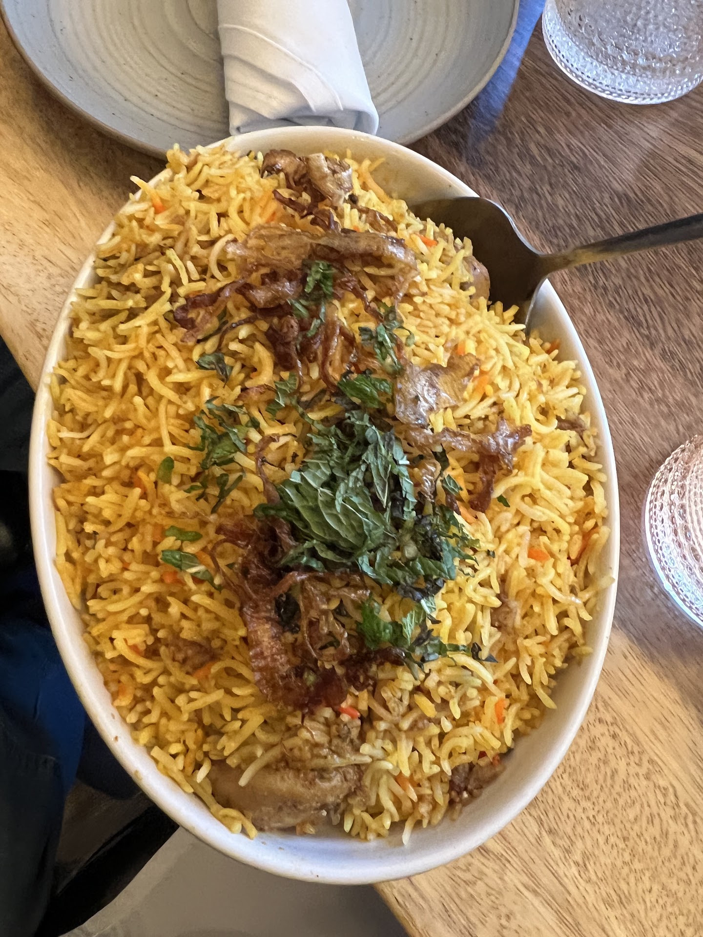 Read moreLovely place , beautiful food, it’s self service , so you order the food at the counter and sit at your table for the food to be delivered. You can also sit at your table and order food on your phone through the code thing they have on your table. We were welcomed in warmly, it’s clean and beautiful inside with chandeliers and mirrors, in the summer will be fun to sit out side. We went for lunch today, our friend mentioned it and it also showed up on my Instagram, it’s been open a month, it’s next to Cafe Tazza and in the old Berevino Italian place in Dublin which sadly shut down. I ordered a mango mojito and lychee martini for me, a chicken biryani so delicious n soft n moist , comes with a raita, and a really nice small Indian salad with cabbage leaves, cucumber, tomato , onions. I hate salads but this was so nice. I am a small eater and took half of this home. The chicken biryani comes with 3 chicken “legs” or”drumsticks”. I compare this to the Yellow Chili Danville Chicken Biryani where sometimes the chicken is dry n doesn’t come with salad, and I like this. My husband had the sheekh kebab n the shami kebab, it comes with the same refreshing small salad I mentioned above, green chutney and Khari naan I believe it’s called it’s. Fermented type of nan apparently , never had it before had it for the 1 st time here loved it, perfect with the kebabs. Total bill before tip was $79 I think, am comparing to our other Indian favorites in the Tri valley like Taj Livermore, Yellow Chili Danville, Essence Livermore, Frontier Spice Pleasanton and this is 1 place we will be coming back to (it’s expensive, but everything’s expensive these days!), we live in Pleasanton will be back here again. If you are in the Tri valley check this place out,...
