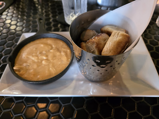 Read morethis place was very nicely redone the inside was beautiful and quiet. the service was great our waitress Claire was very kind and attentive. the hostesses and bartender were also very professional and friendly. i only say that the food was not impressive for the prices. i got the honey glazed salmon and they burnt the honey so it was very bitter although it was cooked nicely in the middle, not dry at all. my man got the short ribs and they were very dry with no sauce at all served over fried polenta. i just think that it definitely needed the gravy with it to make it worth eating and to make up for how dry the beef was. they only offer 2 wing flavors and both are sweet with no depth of flavor just taste sweet. we also got a dessert and that had a great flavor but you can definitely tell they just popped it in the microwave which did take away from how good it could’ve been because of the texture. i do also think the name is a little deceiving because when most people think “craft” you would think there would be a larger variety of draft beers and cocktails but the drinks were pretty limited. i think the speakeasy concept is great i think that the food needs to be as great as it sounds on the menu though and that was not the case. again the service was so good i’d come back in a few months once they get more established and try the food again...