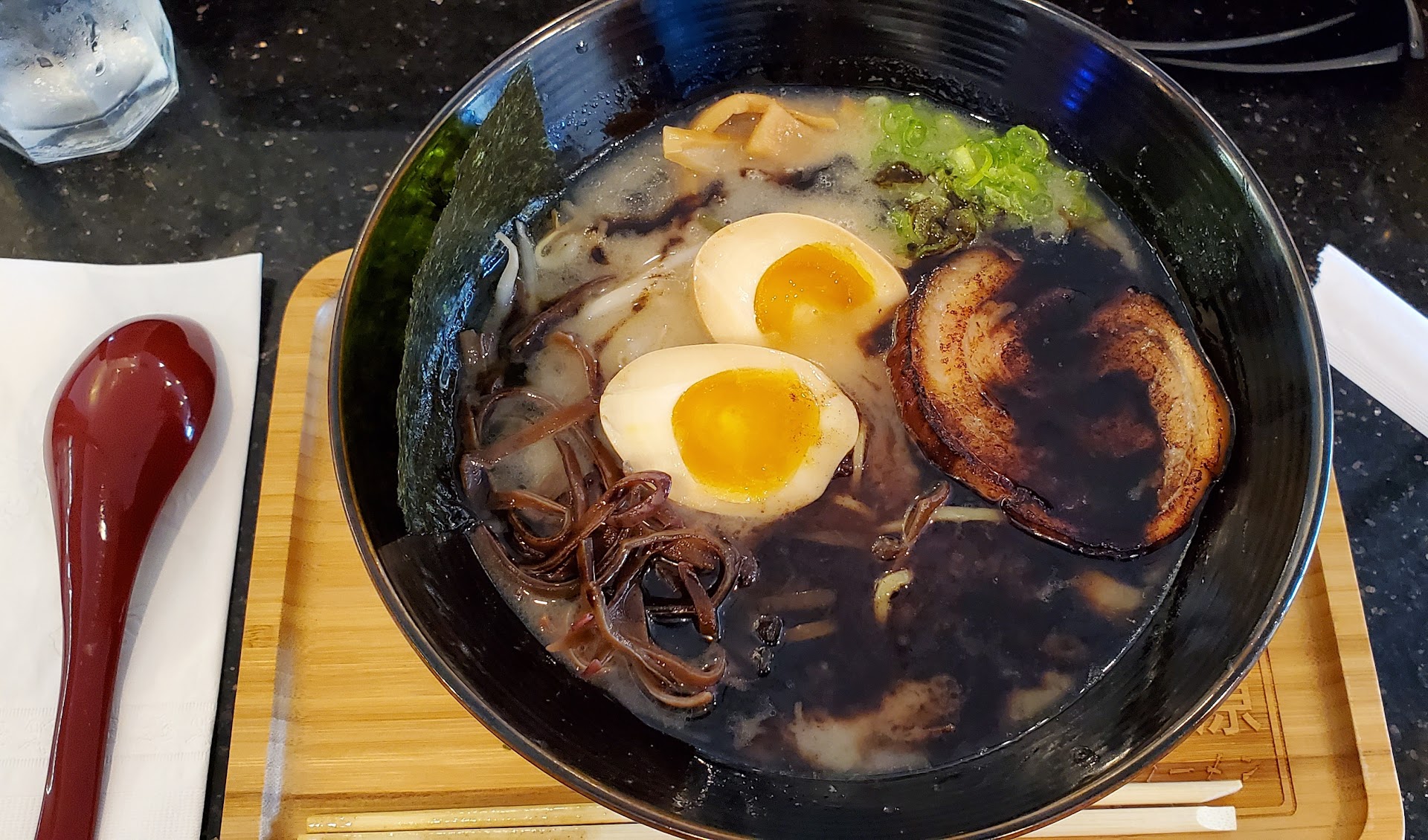 The menu is simple, with 5 ramen options and a list of add ons for extra, and a short list of appetizers, drinks, and dessert, plus a small bowl ramen which could easily be for kids or just someone not that peckish. I got the Kuro Tonkatsu, their take on black garlic ramen. The broth was delicate but flavorful (a neat trick for a garlic dish!), the noodles cooked perfectly, and the chashu actually melted in my mouth. I thought that was a metaphor!