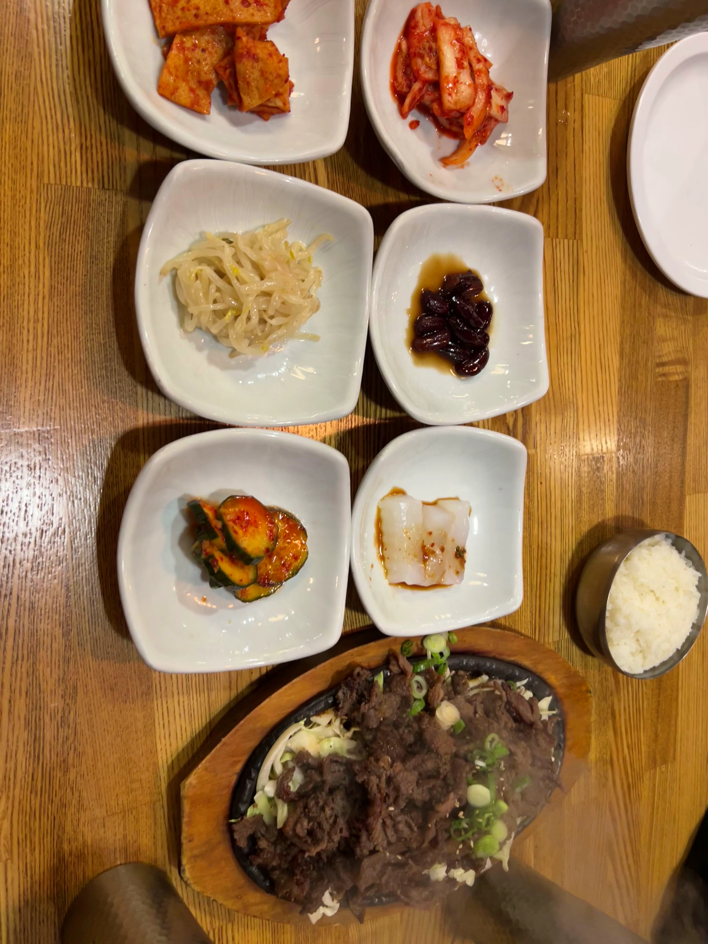 While a couple of the waiters/waitresses came over as soon as we sat down to take our order, as soon as we were serve. No one came back to check on us. We had to wave one of the waiters to serve us a second serving of banchan. Again, the kimchi was kinda bland, not much flavor or spice in any of the small dishes.