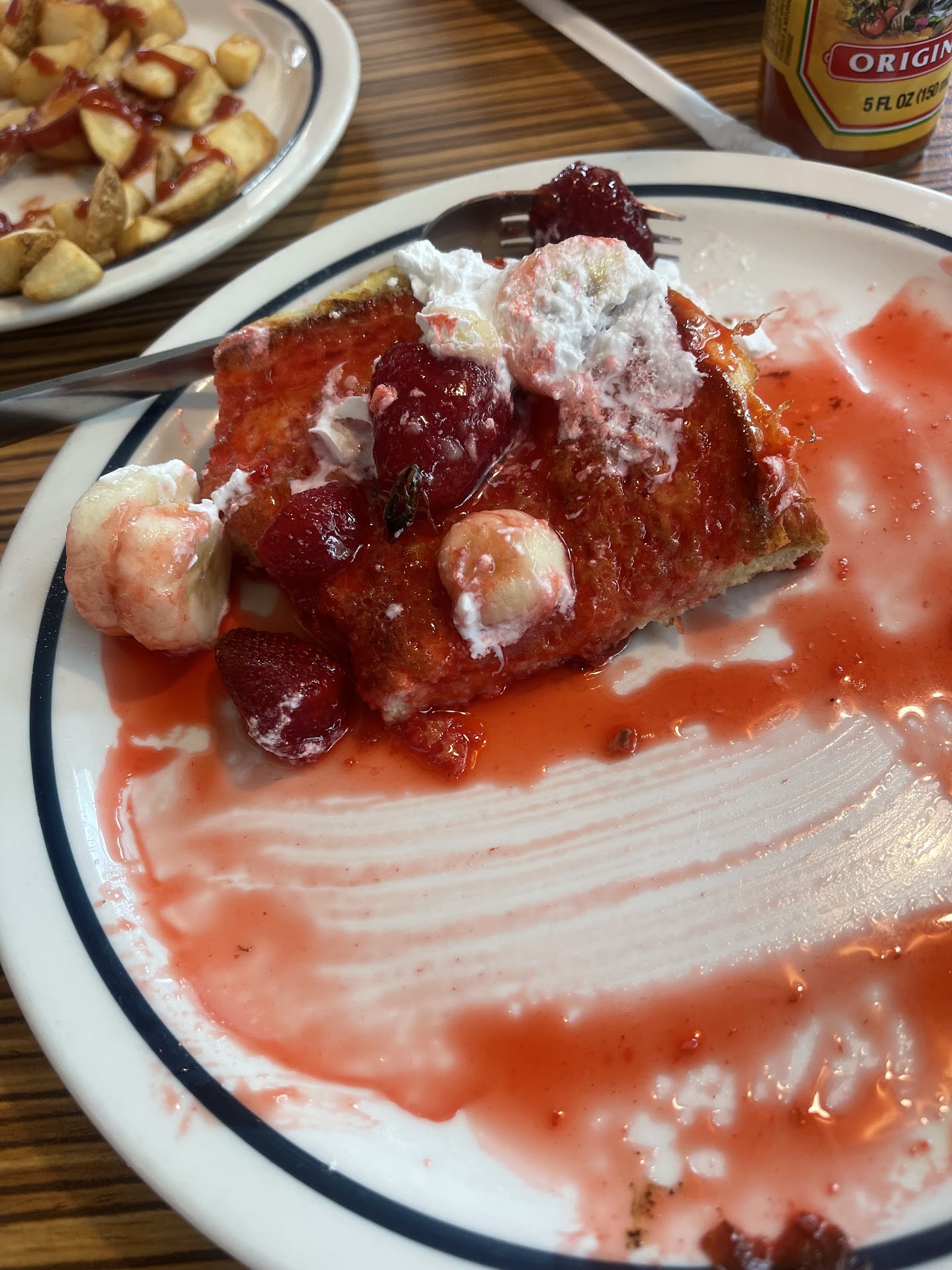 I wanted breakfast food for lunch. The Waitress advise me a better way to place my order for which I got slightly more food at a better cost, big win. My order was Togo as there are new laws about condiments that the Waitress told me about to make sure I did receive my butter, ketchup, napkins and such. She advise me that if I did not ask it would not be included. As I wrote, someone who loves IHOP was put in a position to make changes and improvements. The Steak Omelet was fantastic, The Strawberries and Banana French Toast was DELICIOUS. Plenty of food for me and my dog to share. The TOGO containers are very well thought out extra order of hash browns remained hot. The current workers have made this place better.