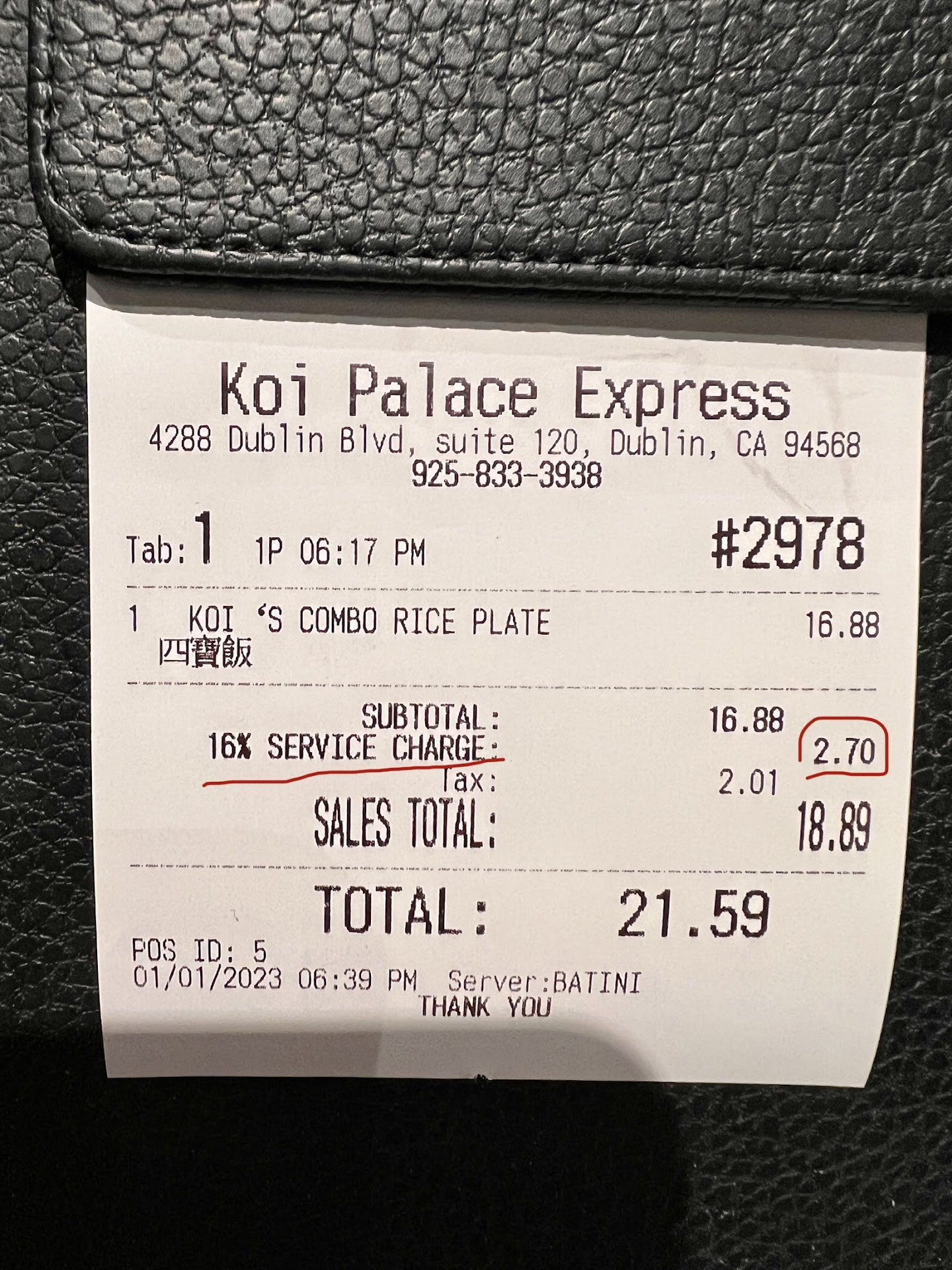 I went to this restaurant for dinner with my 5 yrs daughter; we ordered one dish. I was shocked by the 16% service fee being charged as soon as I got the bill. I ask the waitress, Batini, about the service fee for two people and one dish. She said it was the tip. The food was not good. Steam rice was old and hard to chew, char sui was too thin and dry. And service was just ok like all the other fast food restaurants. I told her I was happy to pay the tips according to the service, but she could not charge me what she wanted. Then Batini asked me to wait and called another waitress to take care of my bill. She was just as cold as the Batini and asked me to pay. I asked her what the service fee was. Then she pointed out the fine print at the bottom of the menu. I did not notice that; their waitress should have reminded all the customers. On top of that, they put a tax on the service fee in the bill. I am not going back again. Since the pandemic, their food quality has not been as good as before, and service could have been better...