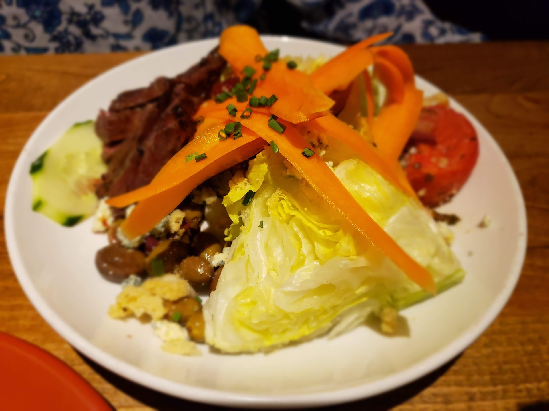 The 1st pic, is a salad with skirt steak added to it. My wife loved it. The 2nd, is the red wine braised short ribs. Full of flavor, perfectly seasoned, and no knife needed. Fork tender, and crumbled with each bite, but wasn't dry.