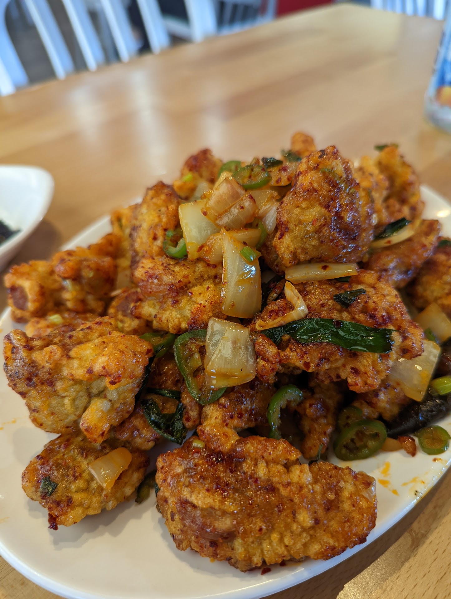 The other dish is called 깐풍기 (ggan poong gi). Man, this 깐풍기 tastes so delicious! I like how its deep fry is so crusty and the meat is so tender. It's spicy sauce is amazing....