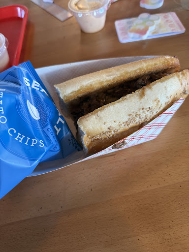 Read moreThis is their advertised “cheesesteak”. What I got was half a cheesesteak for $12. The 1oz of chips doesn’t make up for this crime against humanity. I’m still hungry. I have lived in this area for 20 years and I have never seen a cheesesteak served as a half. Horrendous bait and switch that should be punishable with jail time. If there weren’t a bunch of teenage girls working there I’d walk up and ask for the other half of my sandwich. Offer a full sandwich and charge...