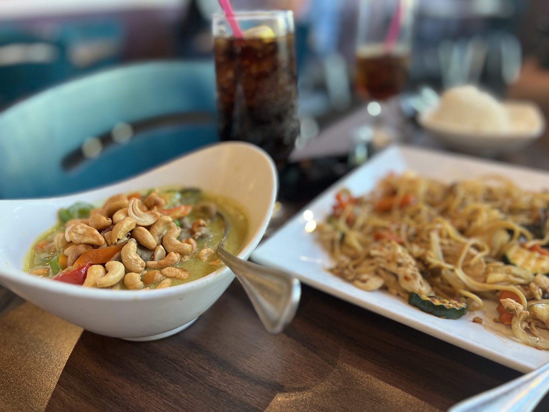 Sadly, most of the food missed the mark. The cashew curry had an overpowering burnt pepper smell that made it difficult to enjoy. More concerning was the chicken across all dishes—it was quite chewy and tasted far from fresh, which really impacted the overall dining experience.