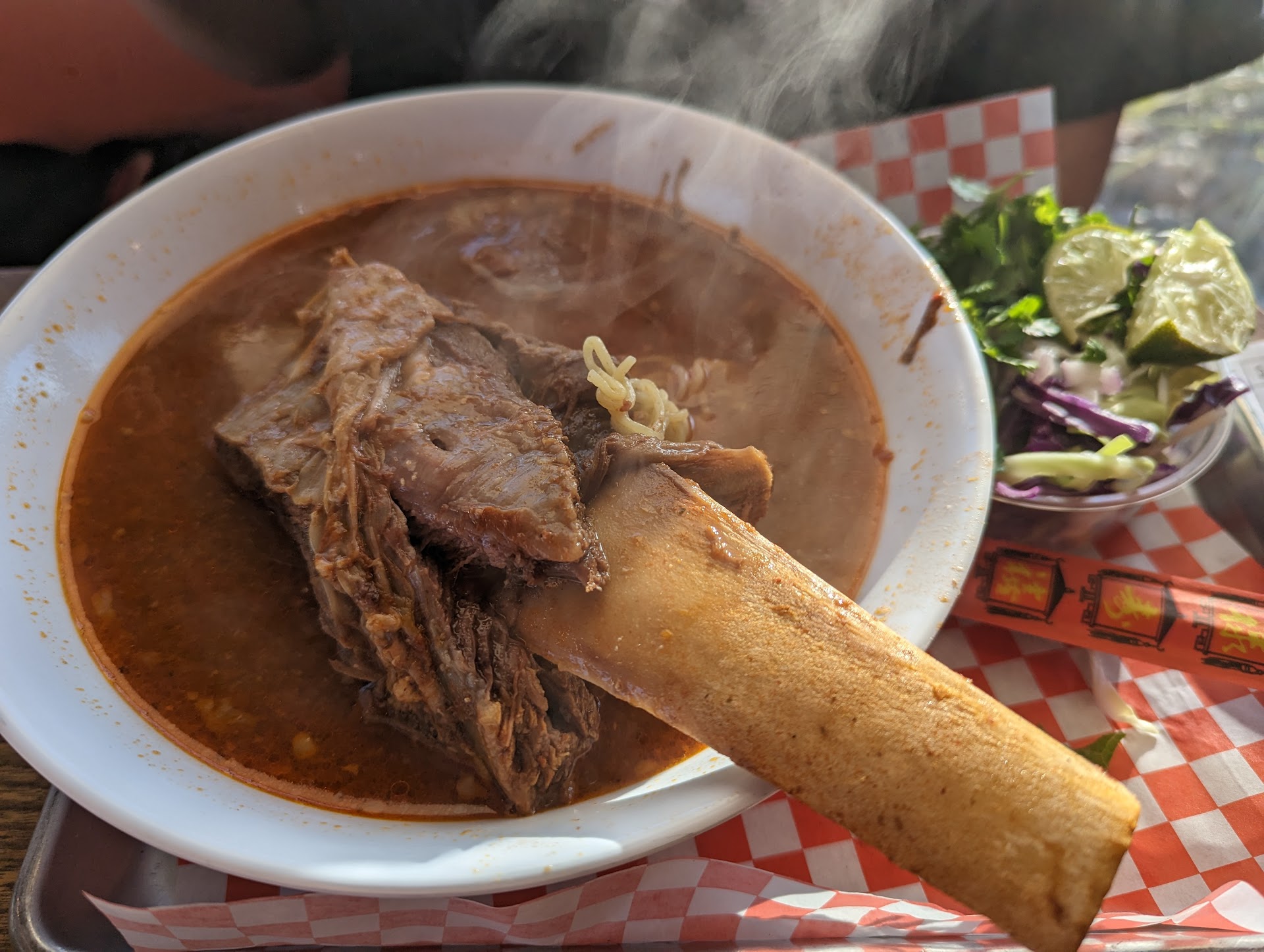 I actually didn't find this Taqueria Azteca through Instagram or TikTok, but rather from an article on SFGate. What rose them to internet lore is their giant taco, which is said to feed 4 to 6 (or Matt Stonie), but since I didn't have that many people with me, I decided on another of their signature items... Birria Phở with Short Rib!