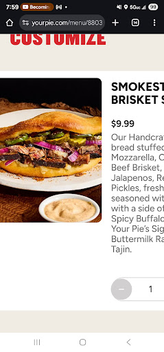 Read moreWe have eaten at many of the pizza establishments in Dublin but had yet to try Your Pie Pizza until today. I ordered the 10" BBQ pizza (#2), and my wife ordered. the 10# Lineage Supreme (#1). For a side disk, we ordered the Cheese Sticks.