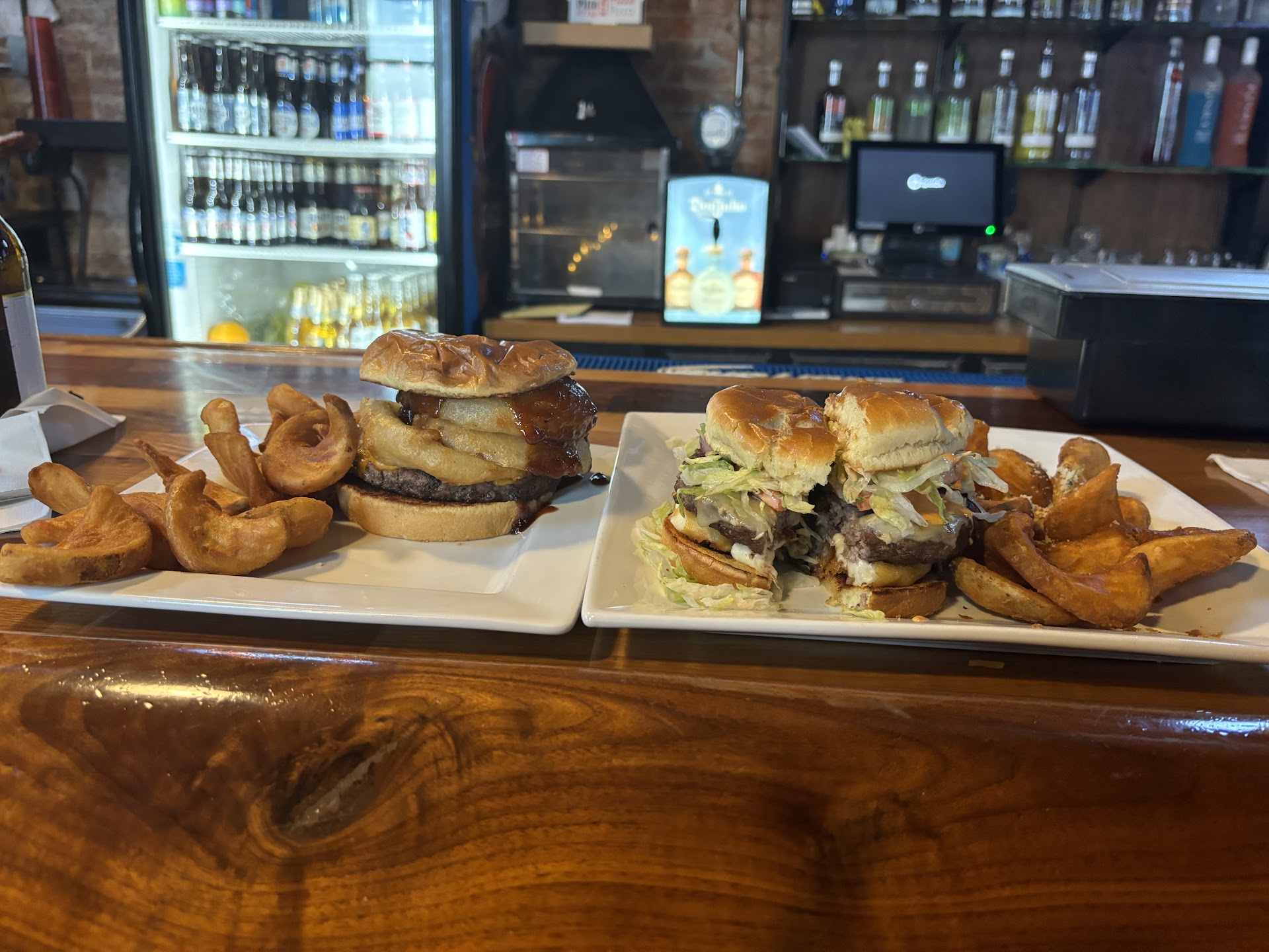The menu had lots of appealing sounding items and I'd bet most people would find something appealing. Note: Food prep was a bit off because my wife received her salad about 5 minutes before my food arrived. This made her feel uncomfortable even though, not minding, I encouraged her to start eating. She did enjoy her steak salad, but had to ask for the egg that was supposed to be on it. I ordered the 1st & Main burger. It was OK. It was lacking an ingredient to offset the dryness of the peanut butter. Maybe more jelly? Something! I got it with onion rings instead of fries and they were WAY too salty. I couldn't eat more than 1 or 2 of them. This could have been due to fryer oil that needed changing but, not great.
