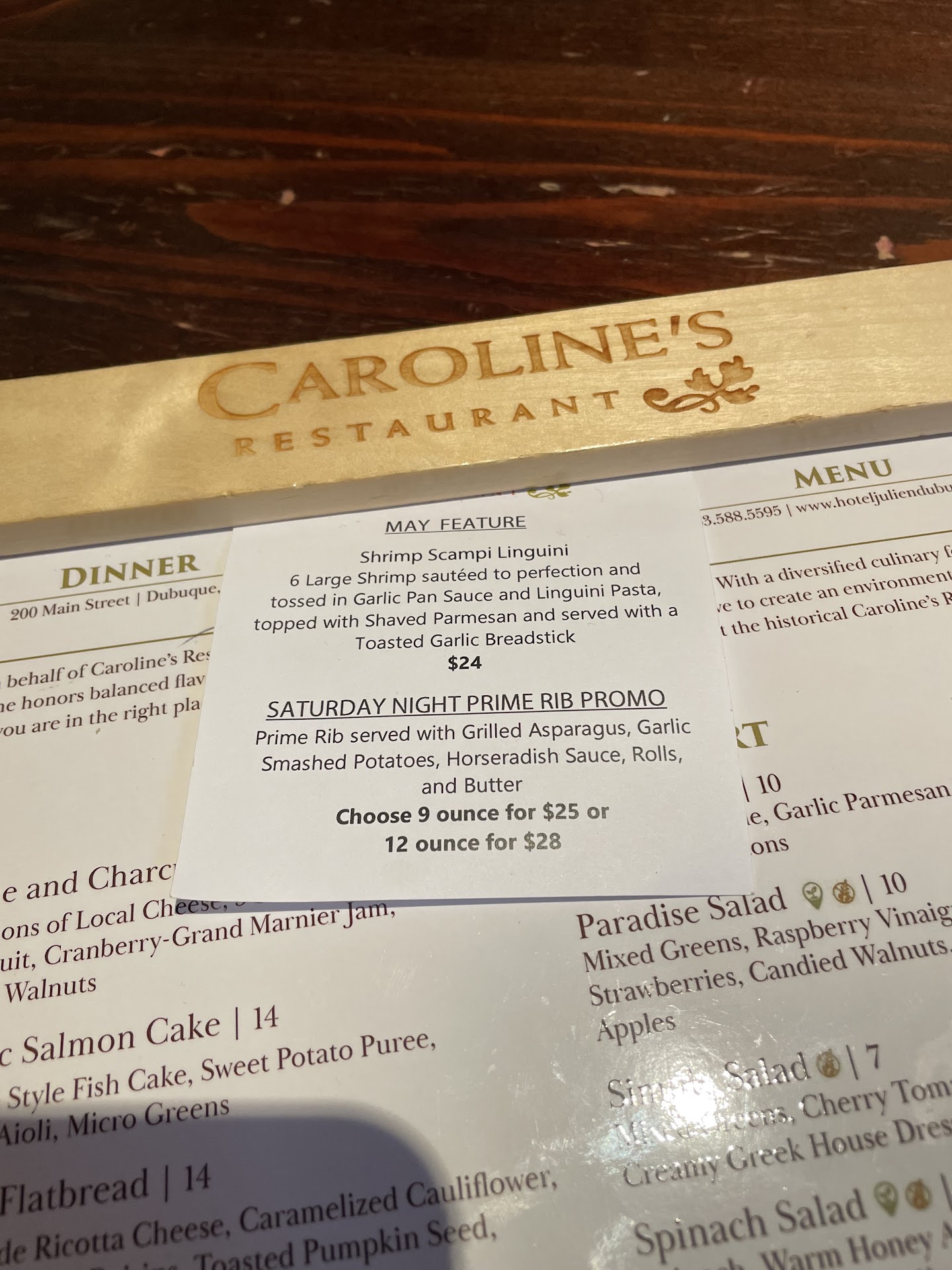 Read moreThe two stars are for the atmosphere of the restaurant. Everything was incredibly overpriced, we had bad service and our experience was not great. We were very excited to come here for date night, as we noticed this restaurant right after we moved to Dubuque and we're very excited to have a nice night out. However, our service was very slow, and we felt as though our server was rude towards our feelings, questions and requests that we made. We felt as though we became an afterthought to our server after it took about 15 minutes for her to come back after we said we needed a little more time to look at the menu and took her quite some time after the food came to check on how it was. I loved my dinner and had originally wanted to substitute something else for asparagus as I do not like it, the waitress said we do not do salads after I asked if I could substitute for a side salad, and she said " I'm not quite sure what you are asking" , and looked at me with a blank stare. My wife and I have been in the service industry for quite a long time and we've never been treated that way as a customer, and would never treat one of our customers the way my wife and I were treated this evening. Instead of doing everything that could have been done to help us feel better and make us happy, we felt like we were being brushed off and we just wanted to leave as soon as possible. My wife ordered the special for the evening and it turned out to be what felt like an entire box of pasta drenched in olive oil with a few tomatoes, olives, overcooked shrimp and feta cheese sprinkled on top... We do not feel like a bowl of pasta salad that has been warmed up should not be $22. Overall we were incredibly disappointed and upset with how our nice date night came to fruition. What we thought was going to be a new place for us to go for special occasions and night out with friends will now be on our list of places we will not go and will tell people we had a...