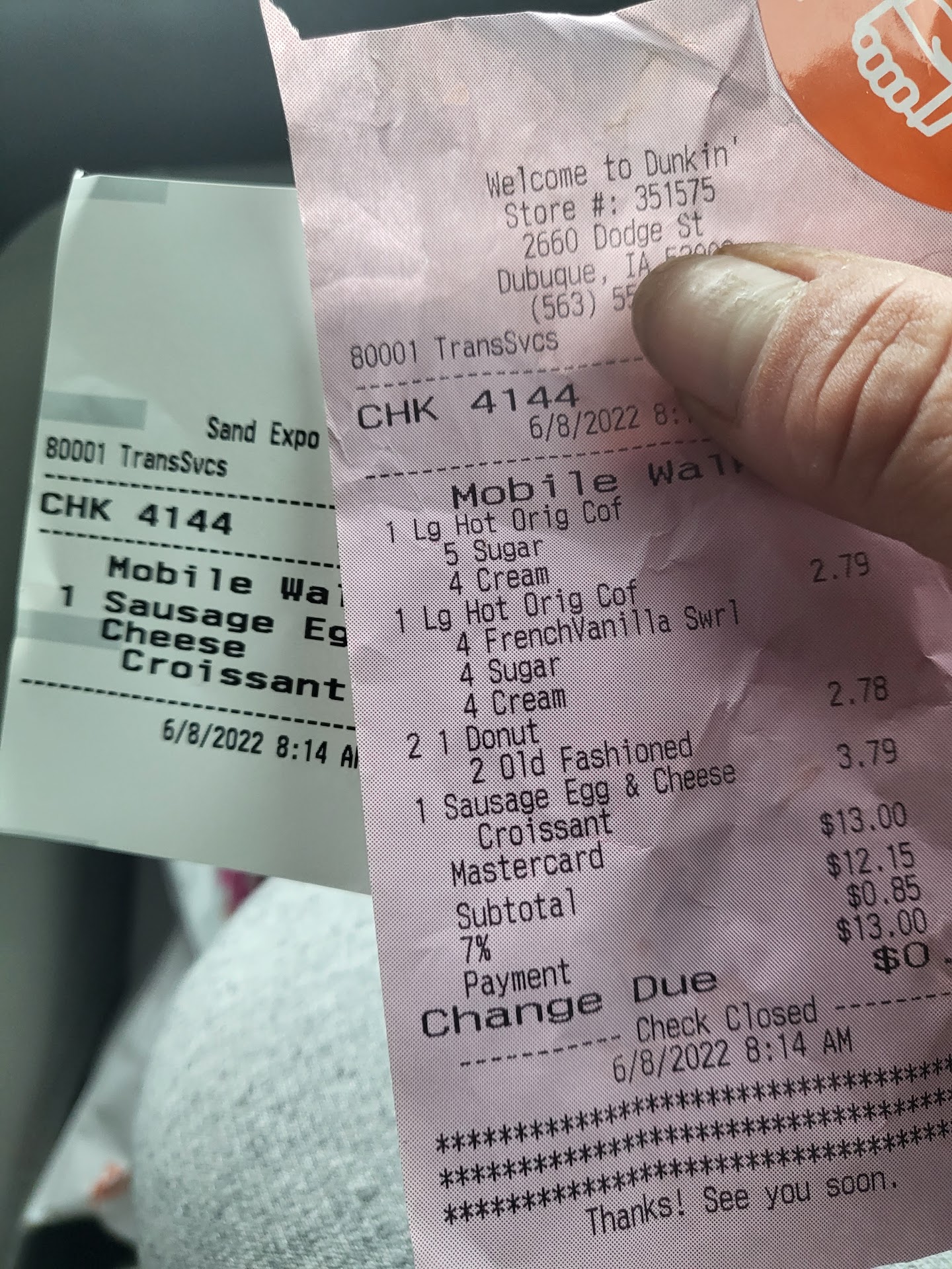 Between burnt hashbrowns on two different day, coffee never being stirred, and the mobile app charging my account 4 times (yes it's pending and will go back in my account eventually but in the meantime I'm out 18 bucks time's the 4 extra times it hit my acct), I'm done with this store. I'll get my coffee and breakfast across the street at the gas station. Terrible representation of dunkin donuts. Oh AND the drive thru people always touch my hand when giving me things which this day in age, you would think they would NOT be doing by now. Done with this...