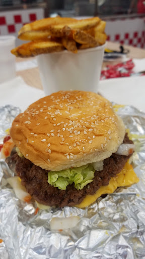 Read moreIt’s just so weird to have every part of your order questioned in a condescending tone. Daughter wanted bacon cheeseburger. She was basically interrogated as to why nothing else on it. She finally agreed to pickles and took them off to appease the lady at the register. We wanted two large fries. We were made to feel stupid for even asking. Look…we’ve gone to five guys in another state before Dubuque even knew what a 5 guys was. We know it’s a lot of fries. We take them home so the kids can eat them when they inevitably are starving again later that night. Then when I say burger with everything. “Do you mean all the way or every thing offered?” What the hell do you think? I thought it was common knowledge that all the way makes sense. Order was large fry. Small fry (bc god forbid we just get what we ask for without being grilled on the choices) 3 burgers and a hotdog. 4 drinks. $75. Hands down the worst service of all time for that cost. I feel as though if I’m paying fine dining prices, I should just be allowed to order and not have the commentary from a snarky lady. The cooks were cool, tho. Friendly and made good food. At that to price and quality of service, I can see why it...