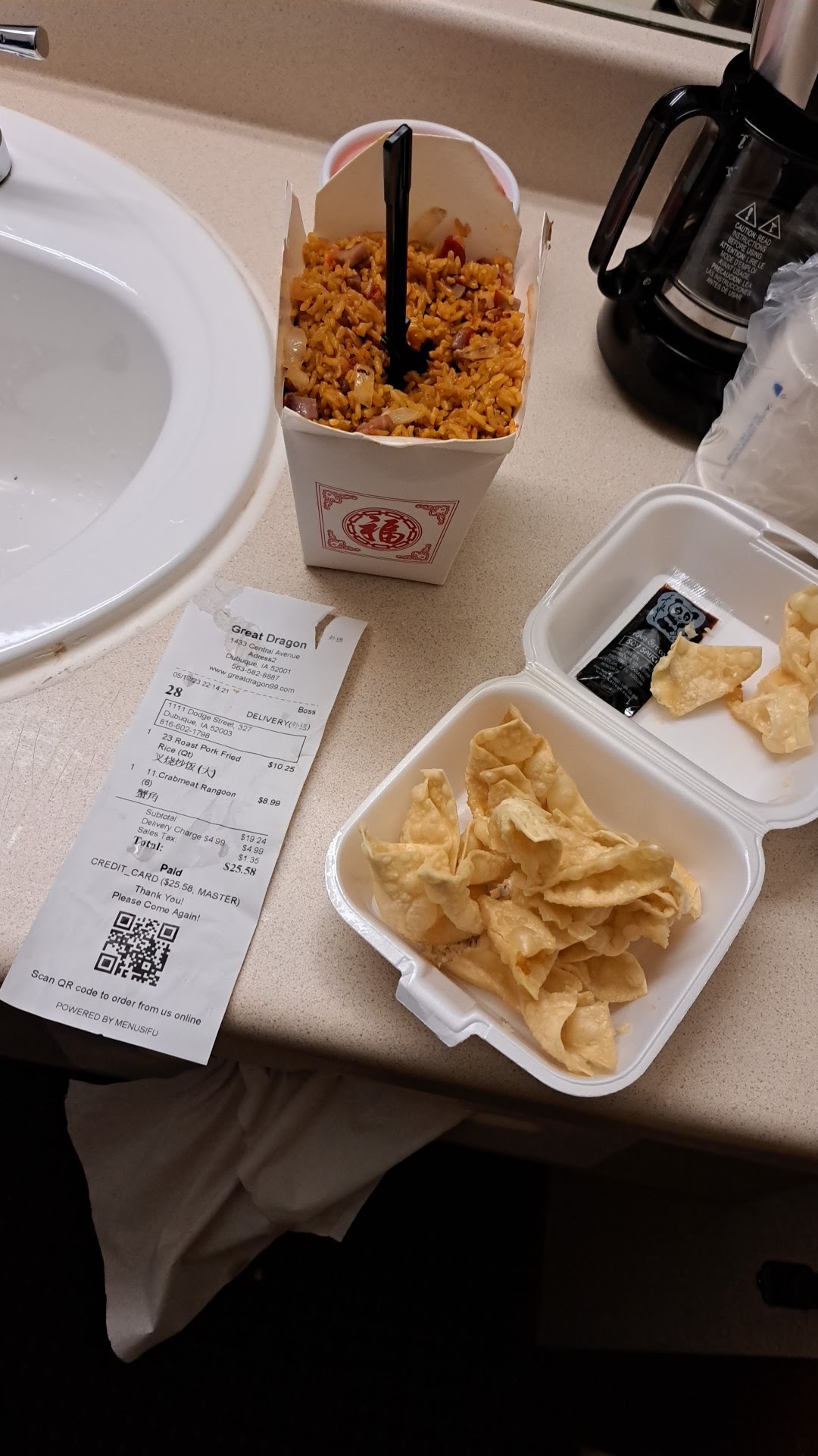 I ordered on NYE ,so I knew it was going to take awhile to get my food. At about 30 min past when the confirmation said I was supposed to get it,I called to check the status.The lady who helped ( who said she was the manager & was very nice)said it's on its way but still took over 15 min to get to me & I only live maybe 5 min away if you hit all the lights. When I got it,my rangoons where cold,the pork wontons were so over over cooked, I couldn't really bite through them..never seem to be able to get those not over cooked idk why, I keep trying.BUT...the rest of my food was a pleasant surprise. I got cashew chicken,which in the past has been breaded chicken chunks which ends up kinda mushy & a tad over cooked,heavy salty sauce, This was nice tender slices of chicken.,lighter fresher tasting sauce .I'd ask for it xxx spicy because they would barely add any before so that's the only way to get any heat. ,this time it was almost too spicy.lol.the chicken fried rice in the past was bland,this one was very flavorful.lol Ive odered from them several times in the past& the food has always been..ok..could be worse, could be better.I havnt ordered from them in quite awhile&.ordered through the website which has been redone,so im not sure if its under new management,new cooks,both or what..but despite my apps not turning out the fact the main dishes turned out much better then before makes up for...