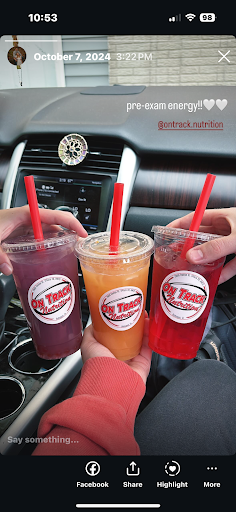 ⭐️⭐️⭐️⭐️⭐️ I absolutely love this place! Kayla has created such a clean & welcoming atmosphere here at On Track! The drinks are SO good…especially the Pink Startburst!🤩
