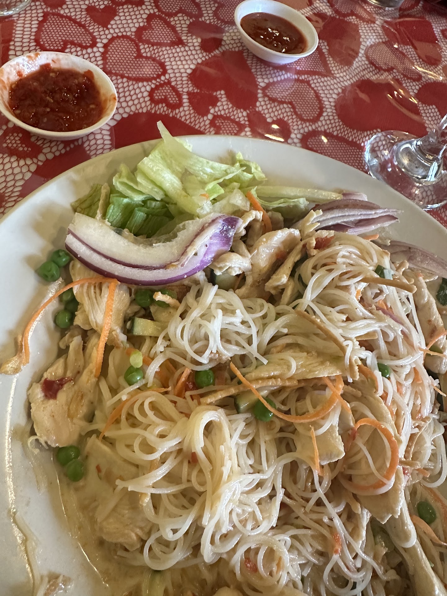 Let me preface by saying I am not a picky eater; it takes a lot for me to say something is terrible—and goodness this food was awful. My husband and I came here yesterday and ordered the following: chicken dumplings, hot and sour soup (tom yum), kam kha gai soup, beef pad thai, and kung pao chicken. Out of everything, the only passable items were the dumplings and Coke; our waitress was sweet and friendly; these three things are the only reason I’m even giving Lina’s one star.