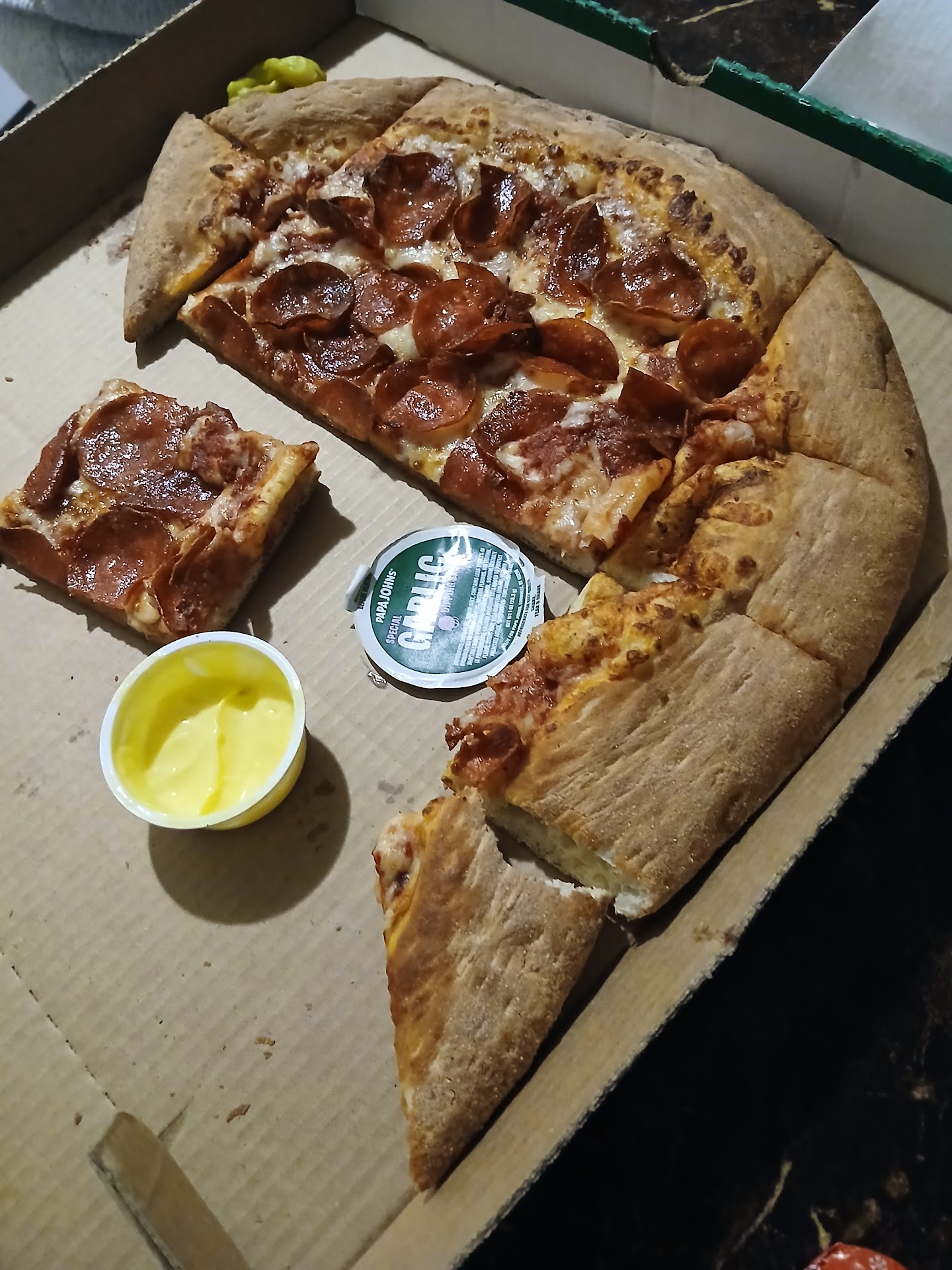 Read moreOrdered a pizza at 12am. After waiting for our delivery that was estimated to arrive in 38 minutes, at 1:11am, we called to check on the status of our order and she said “it is on its way” mind you the gps tracker showed the delivery car in the parking lot of papa johns the entire time. Finally around 1:45 am the pizza arrives and is ICE cold. It looks like it had been smashed and tossed around. Pizza sauce busted all over the box and all over the food. It was absolutely inedible. I call the restaurant to get a refund and their horribly unprofessional and disrespectful employee, Amanda, answers. After describing the situation, Amanda goes SILENT. Says nothing. I literally thought we lost connection and said “hello are you there” and she says “yes” I then ask her again for a refund and she proceeds to tell me “I don’t know what to tell you, maybe you should have done carry out instead” then tells me she’s not refunding me and hangs up on me. So after 2 hours of waiting, receiving inedible food, and being disrespected by the staff, I call back once again and this time someone much more pleasant answers. She informs me that she has been unable to get ahold of the driver who delivered our pizza for the last hour. She informs us that the driver had departed the store with our pizza an hour prior to our phone call and never returned. I am not sure what is going on here or who is running this establishment, but I would rather go hungry than to ever even consider ordering from this place ever again. Save your money, save your time and eat literally anywhere...