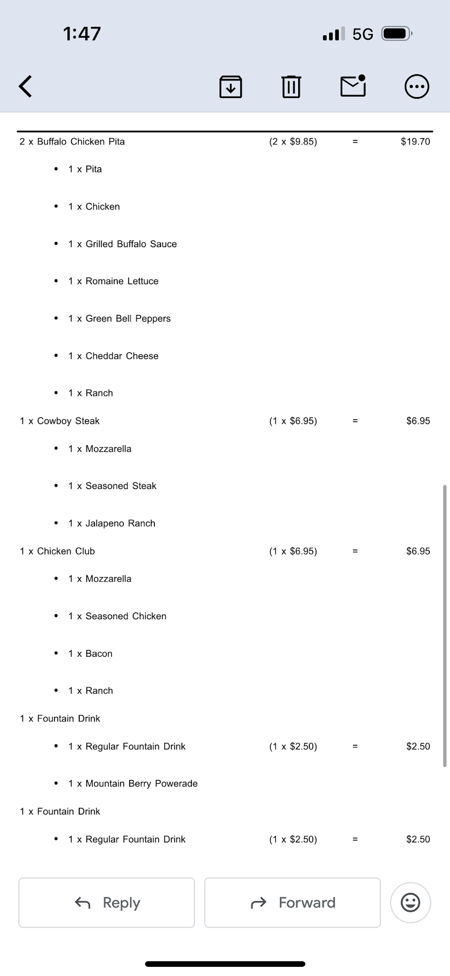 Update: Pita took 2+ hours to be delivered. Called the store back at 1 to check in when it would be there and AJ (who is the owner) was quite aggressive and even threatened to call my employer after I told him I would be notifying corporate of this mess. Lo and behold, 1:15 it is delivered. 2 hours and 7 minutes after ordering. This franchise owner, AJ, should not be operating a restaurant if he can't a.) get a pita made and delivered in less than 2 hours and b.) can't professionally handle a customer inquiry...