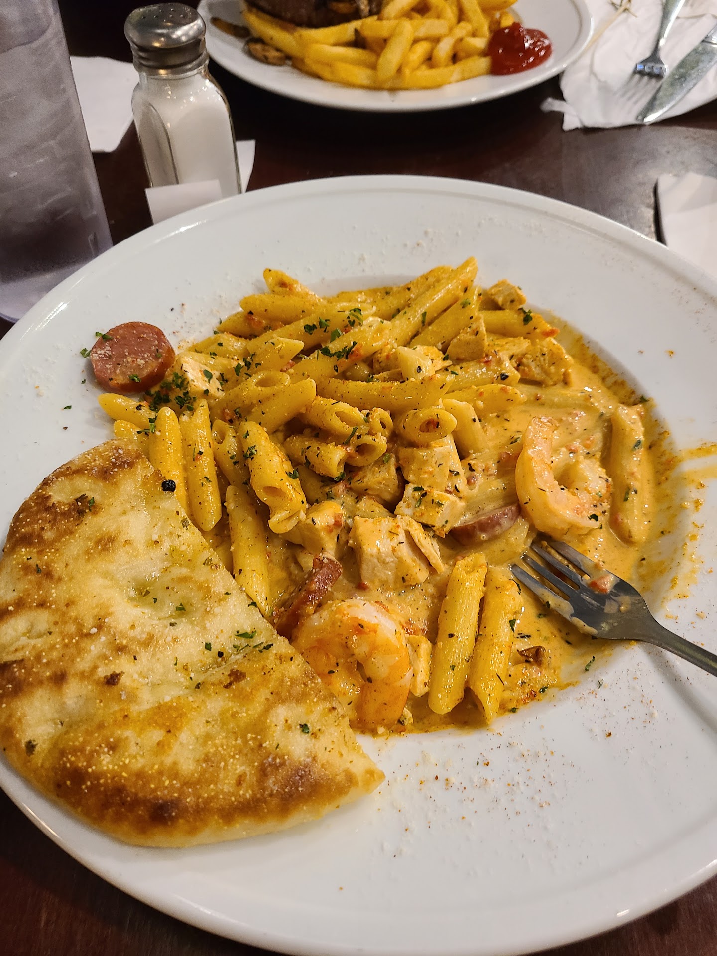 Read moreWe were excited to try this place, but we were not impressed by this restaurant for what we paid. My husbands steak was undercooked and undersalted and the shrimp with it was dry. My stuffed chicken was also underseasoned and was basically just stuffed with cream cheese that wasnt melted and the vegetables on the side were dry and kind of bland. We both chose mashed potatoes with our meals and oddly they came in their own separate dish in what looked like a soup bowl....why wasnt this on the same plate? We also ordered the crab mushroom appetizer and we were confused when it arrived because it was in the form of 4 fried balls. Not a fan of this because why do stuffed mushrooms need to be fried? Never seen that done before and didnt make sense. And again not much flavor inside and didnt really taste the crab, the cream filling just took over. On top of the lack of quality in the food, when the salads were brought out, someohow the guy had spilled ranch dressing all over my hand. And my husbands beer took forever to arrive, and we had to ask for it twice. We definitely...