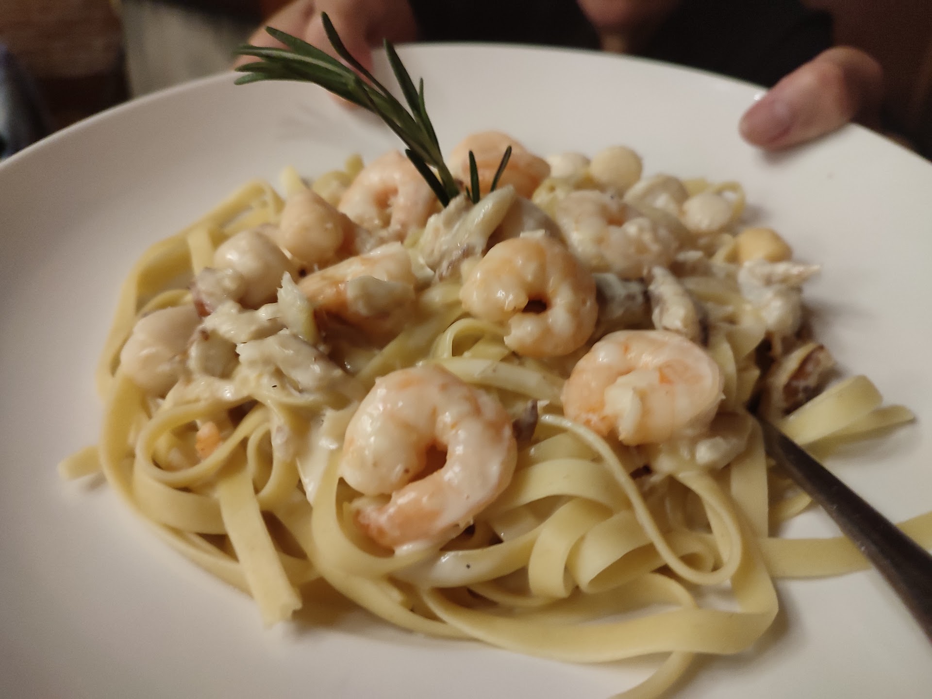 Seafood Fettuccine** Needed more salt...lacked in the savory department.