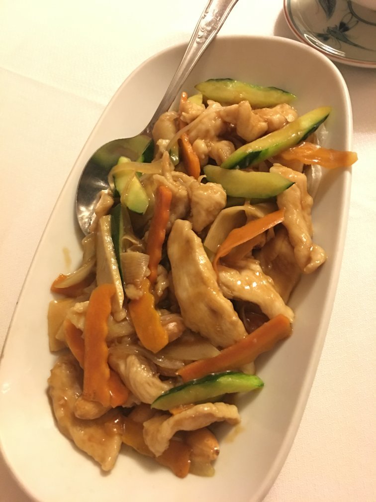 In my dish there were baby potatoes, which was weird and not correct. My only guess is that they saw a picture of the dish and saw water chestnuts in the picture and then decided they must be looking at baby potatoes? We also had fried rice which wasn't fried at all. It was steamed brown rice with some peas and carrots in it. Did they see a picture of fried rice and wonder why it was brown and then guessed it was brown rice? Who knows, but they Do. Not. Know. Chinese. Food!