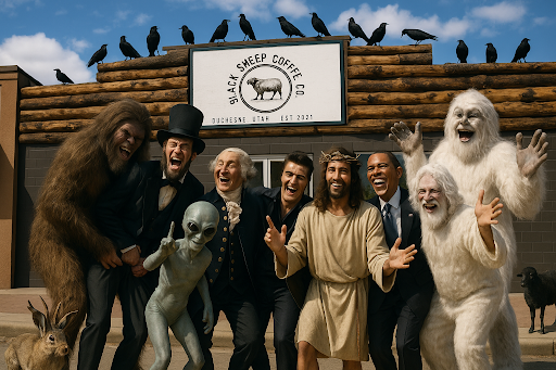 Read moreI like a small town coffee shop - and Duchesne, a town I only pass through a few times a year, really really needed one. And the vibe I've always picked up in Duchesne was, let's just say, not friendly. However, this place really could turn that around. I've stopped in a couple of times now and really enjoyed the very specific atmosphere. Some small town coffee shops go for bland chic - just "live, laugh, latte" kind of thing so you feel like you could be anywhere. But not Black Sheep. They lean-in to the local weirdness, which I completely love. "Conspiracies found here" is the sign on the wall and the owner explained that people just shared different conspiracy theories there and she decided to go with it. I love that uniqueness. Also, the coffee was great! I say definitely...
