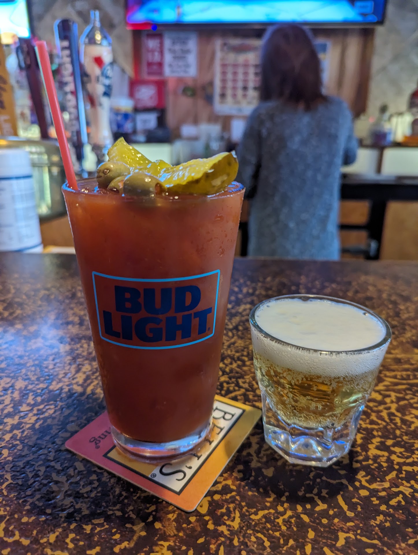 Local watering hole with local clientele. Friendly staff. Friendly customers. Friendly owner. Frosty mugs and frosty glasses of Domestic taps. No men with man buns wearing overpriced flannel and beanies. That also means no craft beers of course. Frozen tavern style pizzas for food. OR, Hugos Pizza and Subs, burgers, etc...is right across the street. They will deliver an order to you at the bar if you like and they have a large selection of very tasty offerings. Knock back a drink or two while you wait for your take-out order or eat...