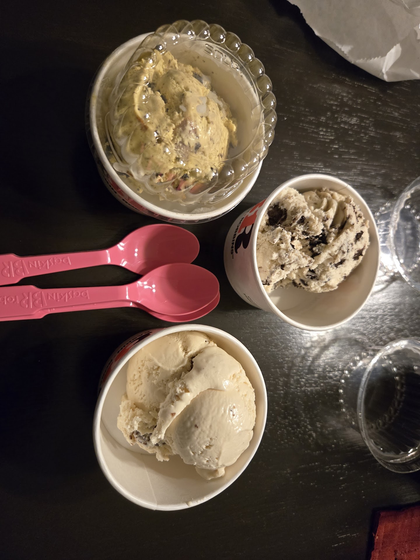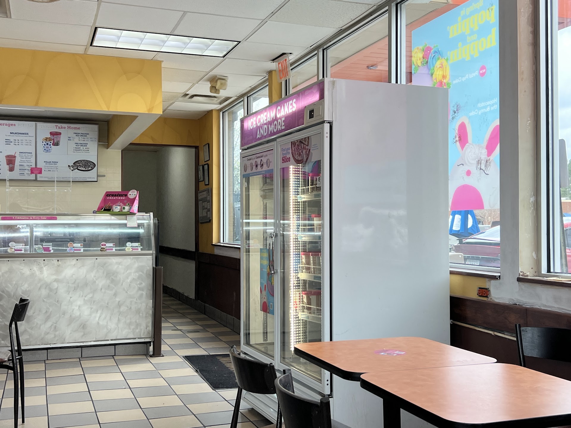 It's been a decade since we last tried this location for ice cream cakes. Sadly, their service has declined even more. When I arrived, I was the only customer in the store. I think there was 1 in the drive thru. I was not greeted with a smile or a "how can I help you?" But with a pointed stare. I let them know I was here to pick up a cake I had ordered. It took almost 10 minutes for 2 workers to locate the cake. The box they had the cake in would not close properly, and one of the workers spent several minutes making an attempt. (When I got home I also noticed some melted ice cream on the outside of the box. Ew) When they showed me the cake, I noticed that the lettering and top were somewhat freezer burned. I placed my order just a few days ago. This was a custom cake. How was it freezer burned? We get a couple of ice cream cakes a year from other baskin robbins locations, and have never received a freezer burned cake... Except for when we got a cake from this location a decade ago.