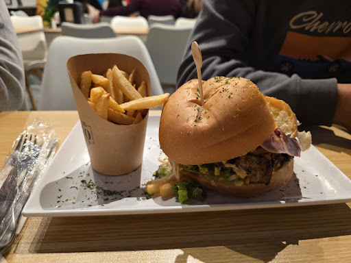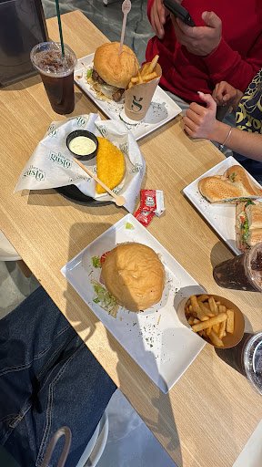 Ordene un patacon de pernil que creo que cocinaron sin sal, pero con el jamón y el queso se podía comer, el patacon de carne mechada estaba rico, y la hamburguesa date un gusto para mi fue la ganadora, volvería solo por la hamburguesa. La espera fue de 40 minutos, a pesar que no estaba lleno. Las meseras muy amables, y la atención del personal fue buena en general. Antes de venirme pedi 3 postres para probarlos en casa, y lo mejor de todo fue la torta 3 leches, super cremosa y deliciosa, el enrollado estaba bien y pero el brazo gitano no lo recomiendo, es dulce pero no identificas el sabor del relleno ni de la crema. Espero haber sido lo más objetiva posible y que mis comentarios los ayuden a mejorar para que sigan creciendo...