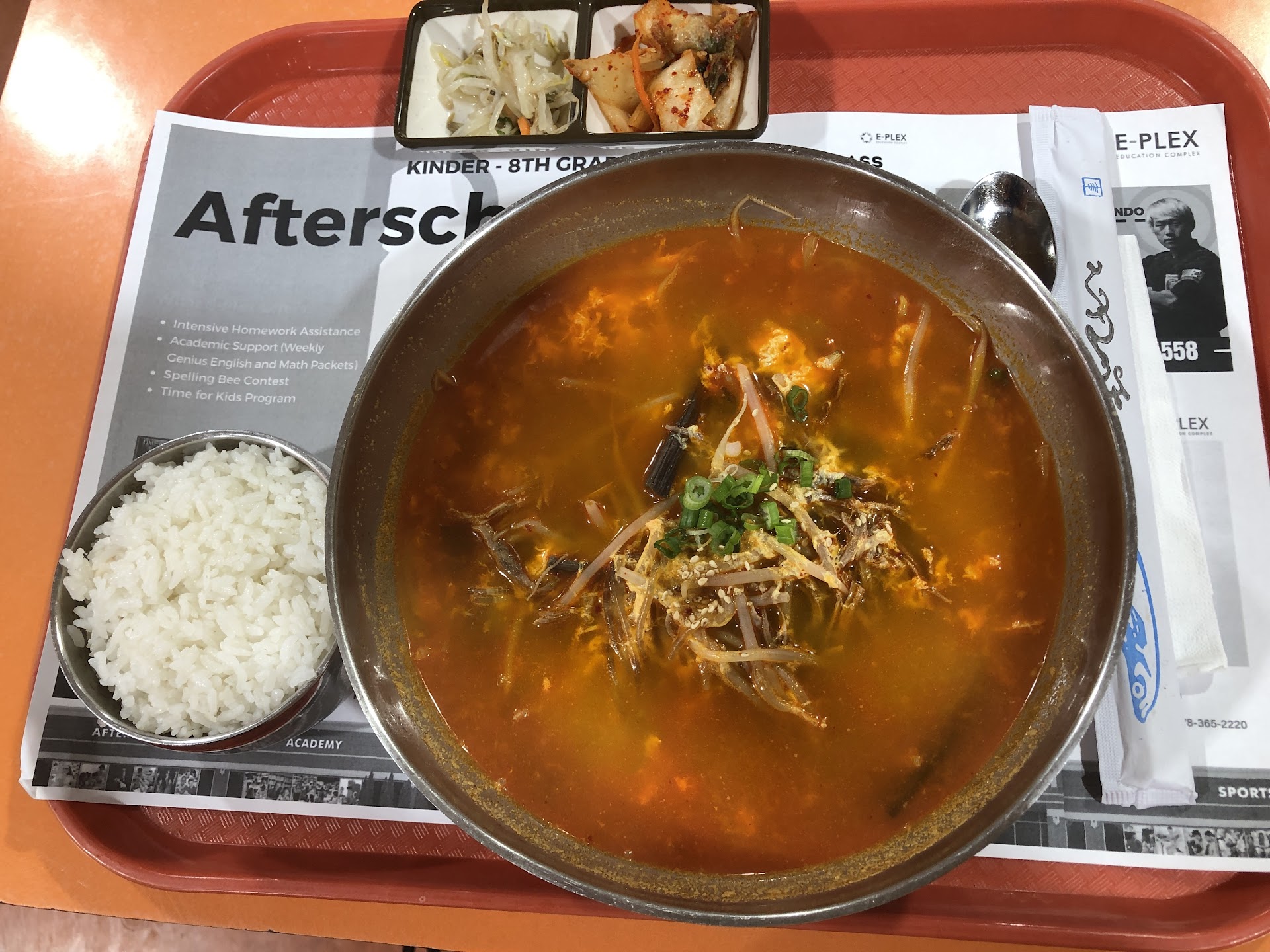 Read moreQuick Korean food. The menu is vast and the prices are very reasonable. Things you should know: I. PARKING The restaurant is in the cafeteria section of the HMart in Duluth. The parking lot is huge and there's plenty of free, available spaces. Easy. II. SERVICE Once you order at the register, the cashier gives you a buzzer to let you know when your food is ready. I see a lot of reviews of people complaining about the employees not smiling.. I want you guys to know that it's an american custom to smile at strangers and not something all other countries see as a social normality. Read up on it & thoroughly educate yourself.. do not take it personally. III. QUALITY It was my first time trying both Kimchi Albap 김치 알밥 and Jaengban Makguksu 쟁반 박국수. I don't have a baseline to compare but I enjoyed the taste alone. IV. CAPACITY Fair traffic flow of people coming and going. Majority of the food ordered was to-go...